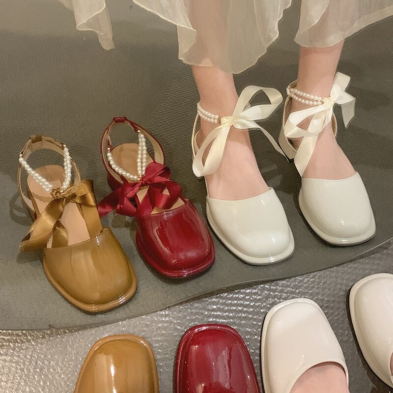 サンダルパールサマーヒール レース 靴 シューズ 夏物 レースアップ 真珠 jxjxf44774825182