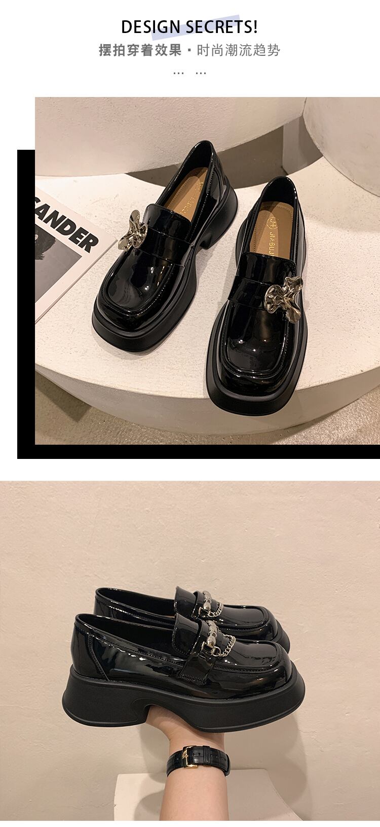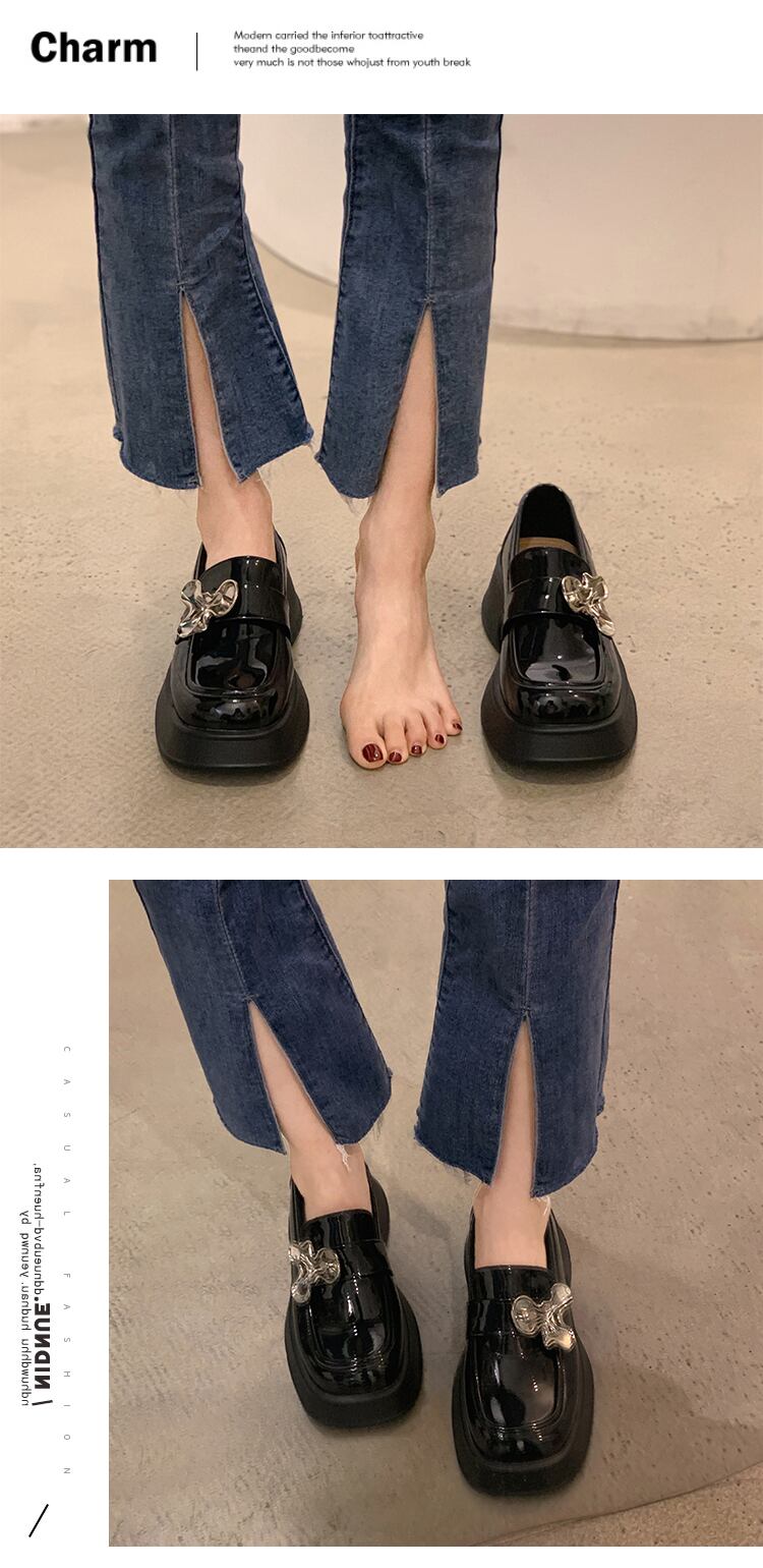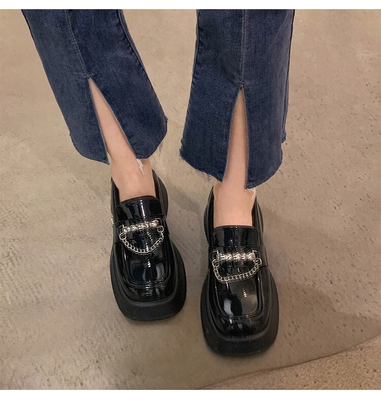 スタイルサマーメタルチェーン スタンダードブラックレザー 靴 シューズ レトロ ローファー 夏物 スクウェア jxjxf98038715277