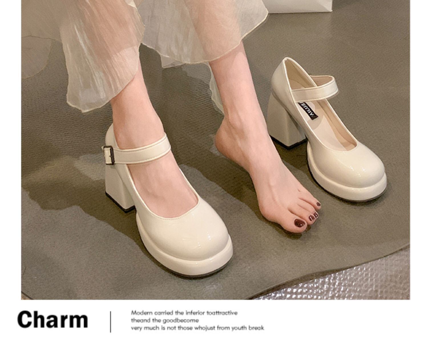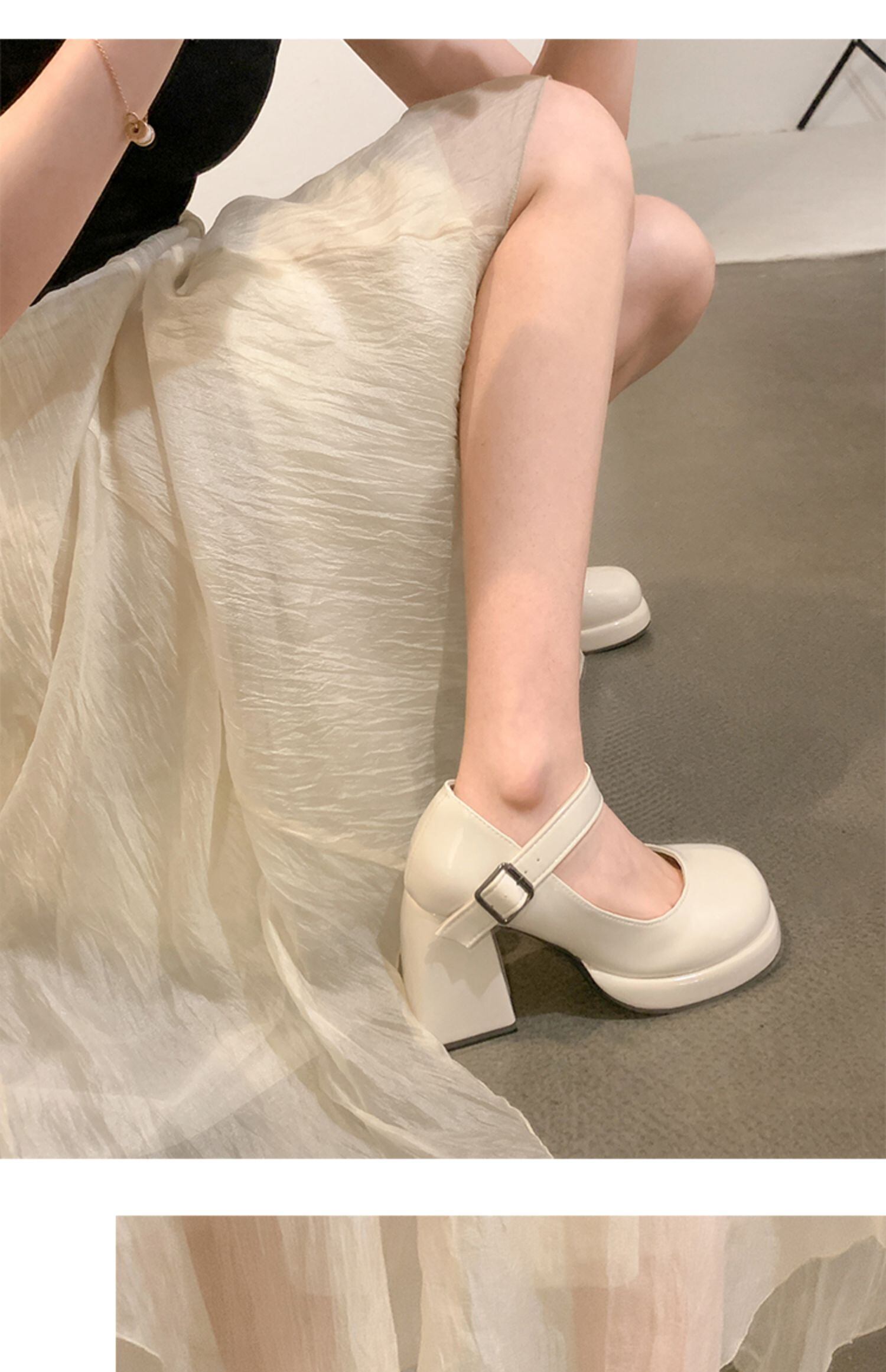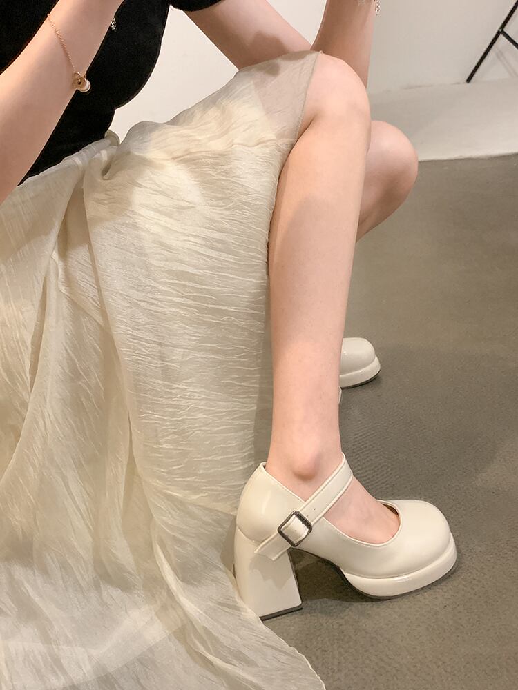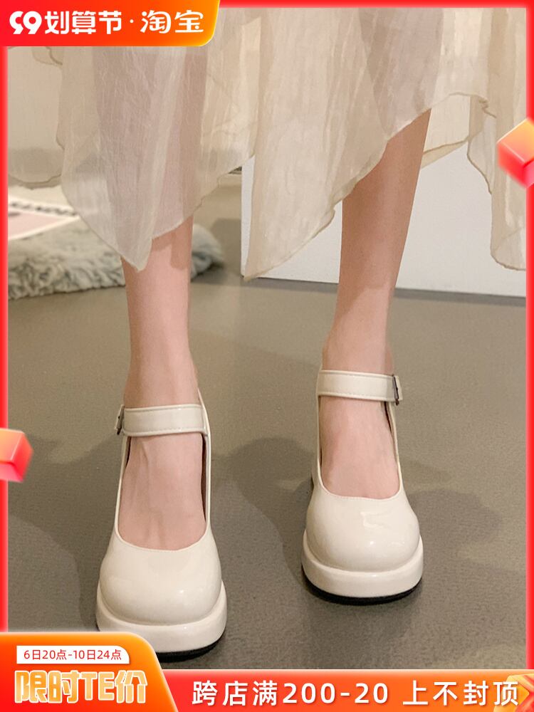 厚いヒールの小さな革の靴の女性の 2022 年の新しいフランスの気質の傾向のすべての試合の秋のハイヒールのメリージェーンの豚の腰の靴 シューズ サマー 夏物 オータム 秋物 レザー jxjxf82617940195