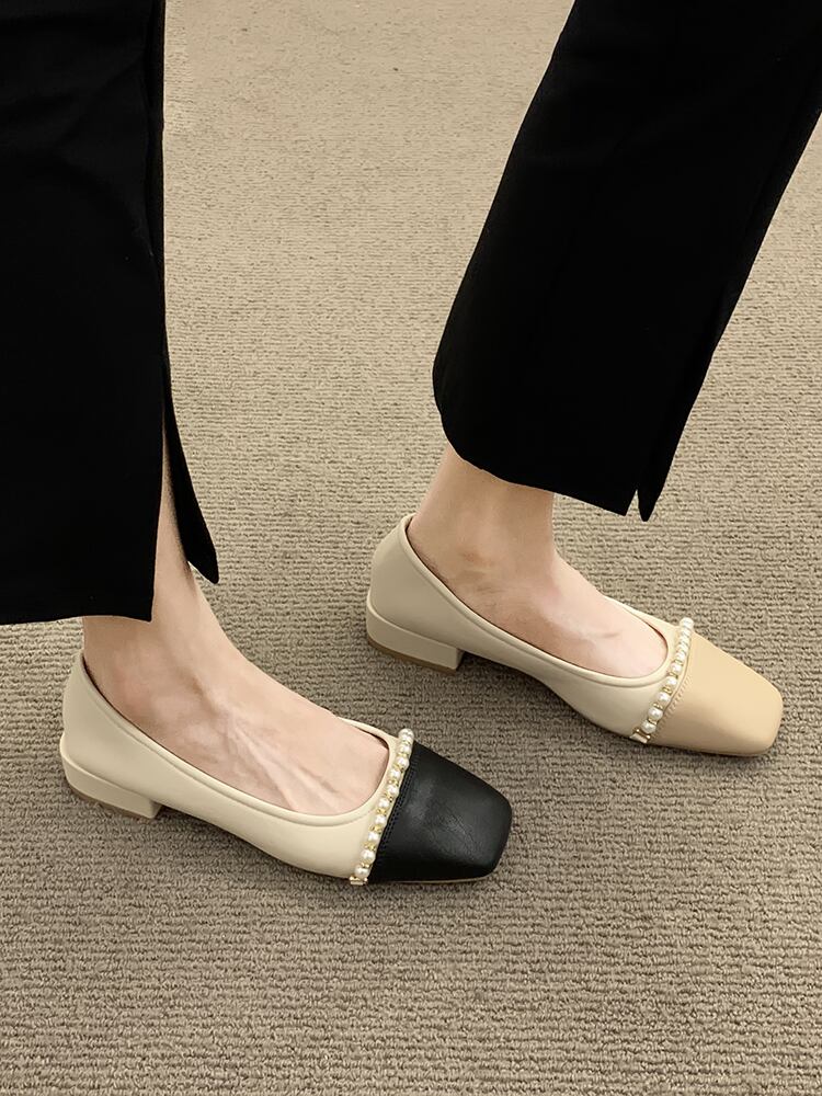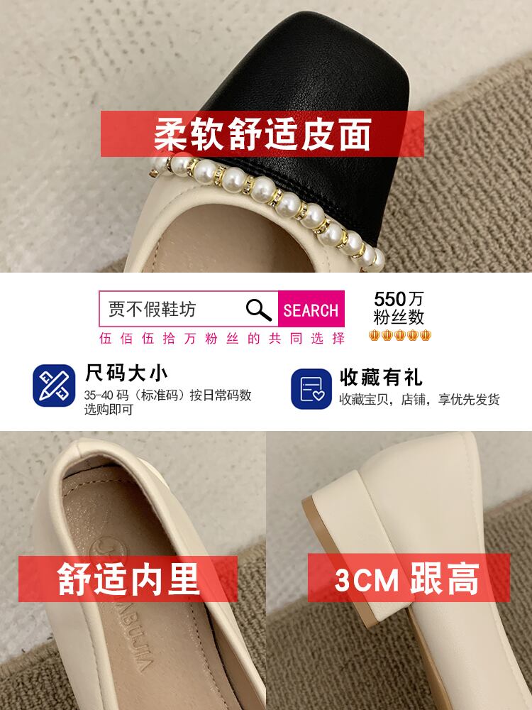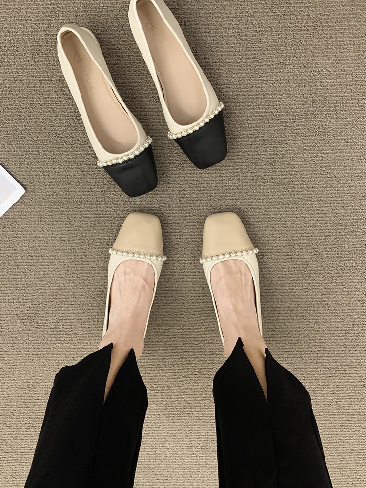 浅い口の単一の靴の女性の夏の2022年の新しい秋のフランスの気質の優しい女性のスタイルの春と秋のローヒールの真珠のおばあちゃんの靴 シューズ スプリング 春物 サマー 夏物 オータム 秋物 パール jxjxf29518910523
