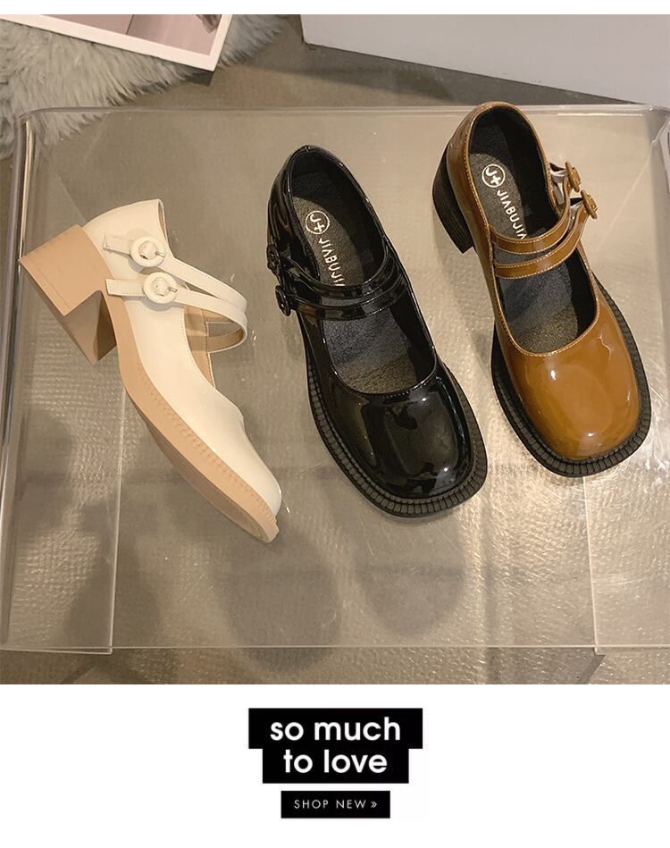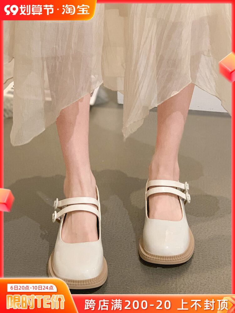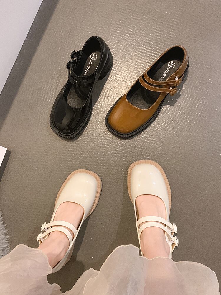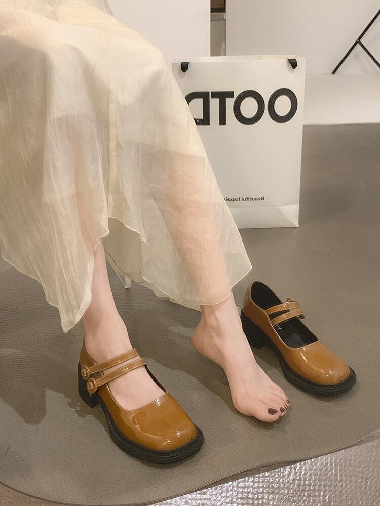 フランスのメリージェーンの靴の女性の夏の 2022 新しいシンプルなファッションの気質の優しい妖精のスタイルの厚いヒールの小さな革の靴 シューズ サマー 夏物 レザー jxjxf7285124331