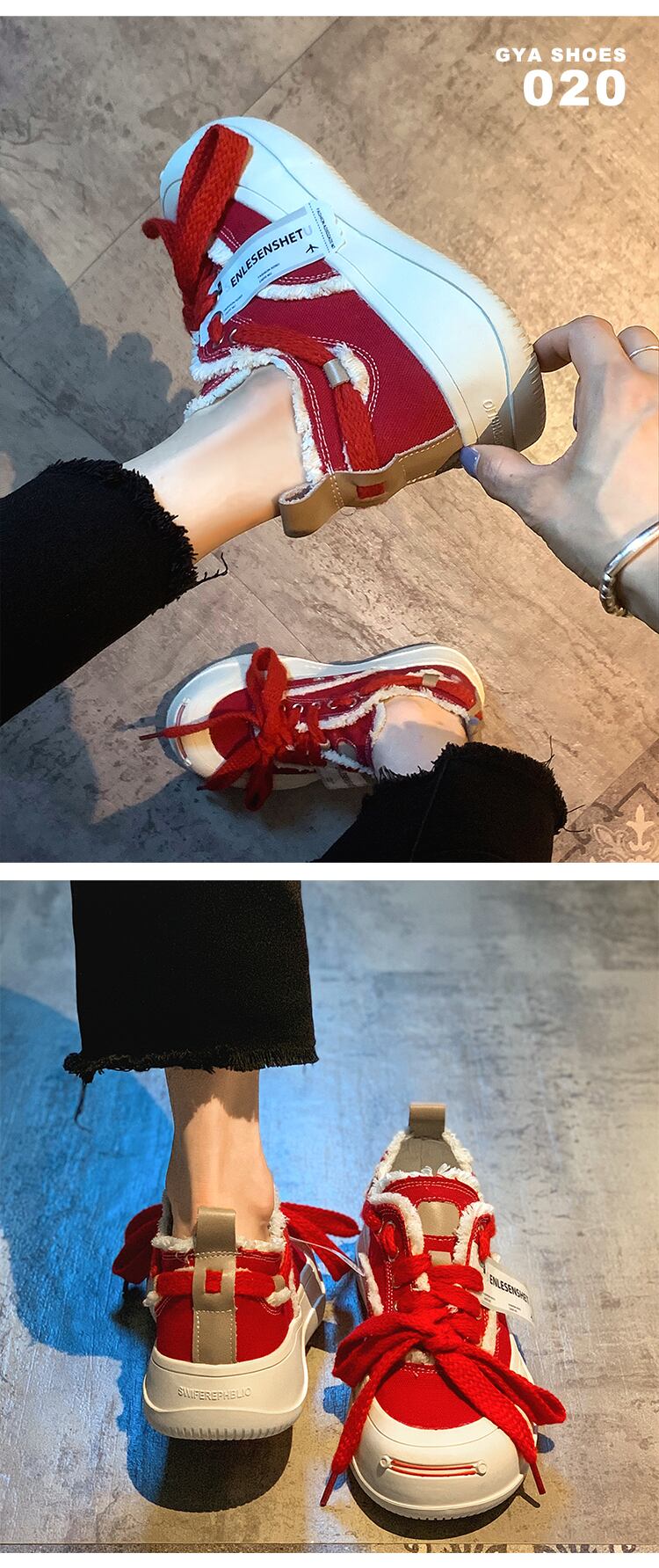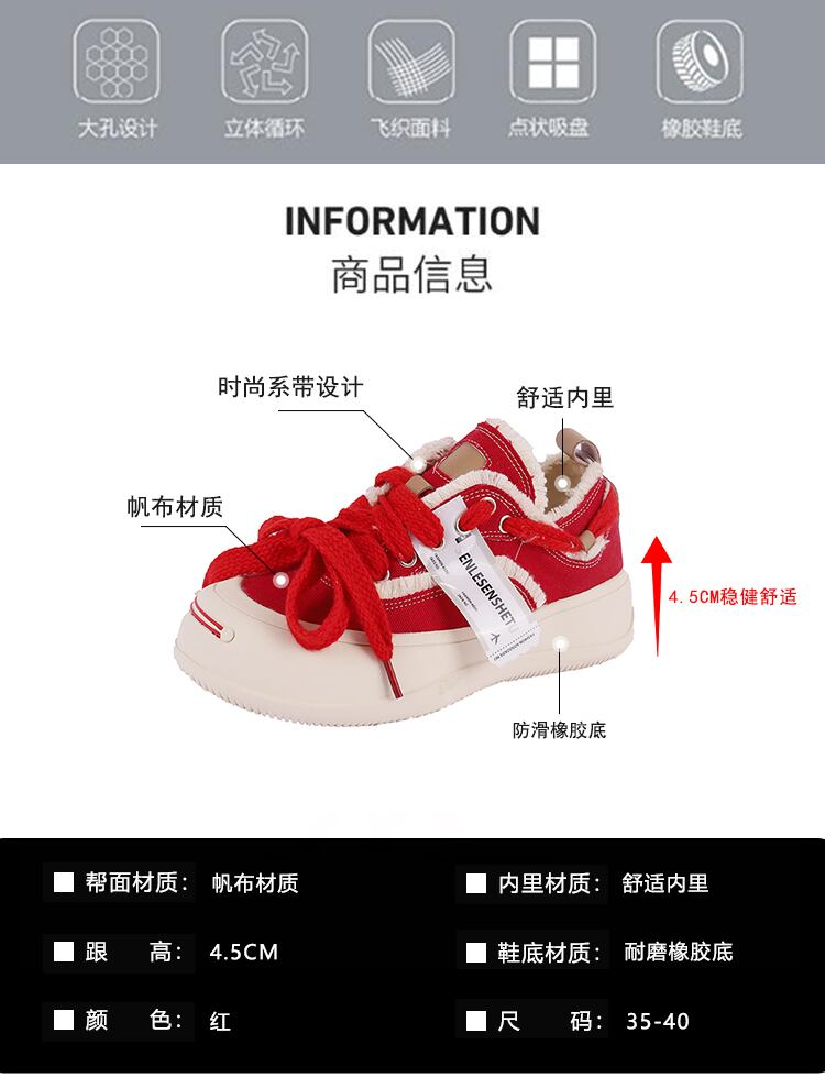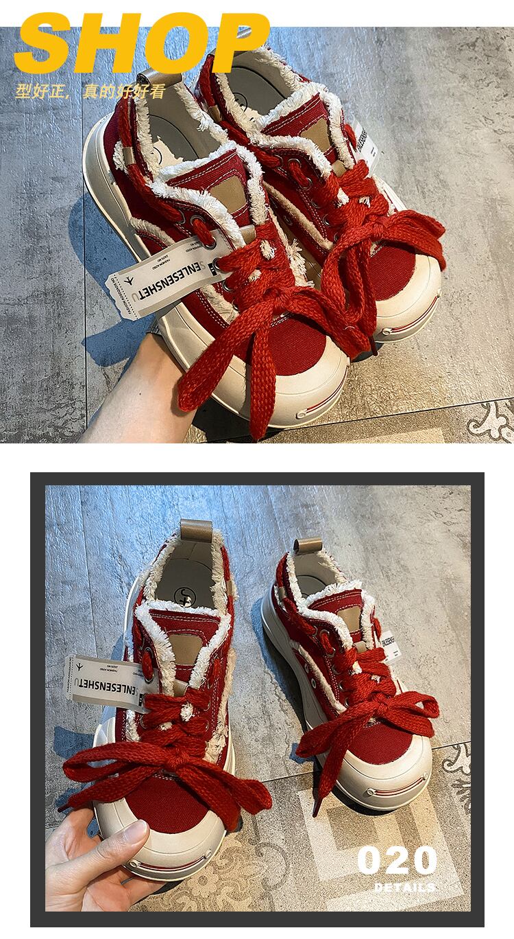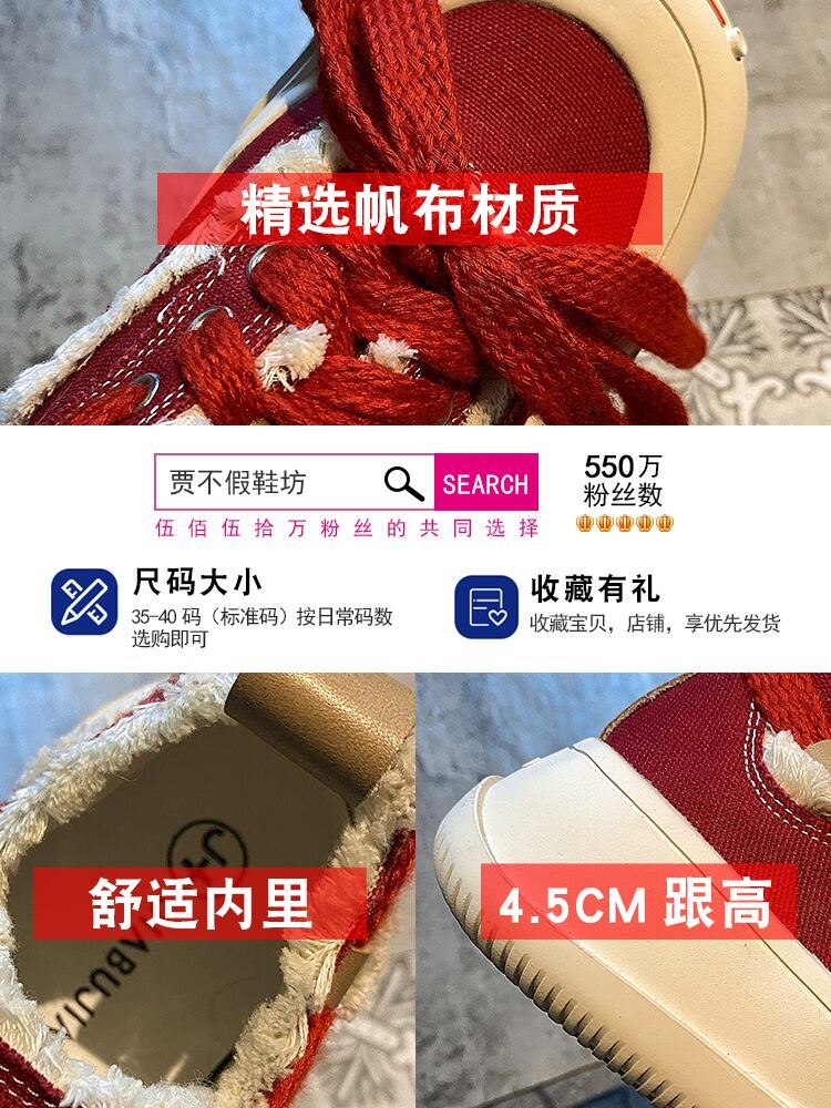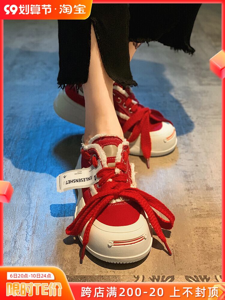 賈布偽のキャンバスシューズ女性の2022年夏の新しいストリートスタイルのオールマッチの個性的な厚い底の滑り止めの赤いカジュアルシューズのトレンド 靴 レッド サマー 夏物 jxjxf56808660832