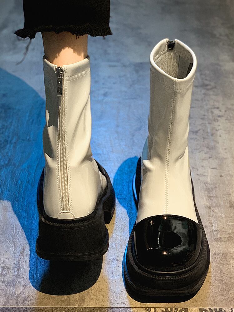 嘉布フェイクショートブーツ女性の 2022 夏の新ファッションオールマッチ個性黒と白のレトロな厚底ノンスリップスキニーブーツ ホワイト ブラック 靴 シューズ サマー 夏物 jxjxf39668748853