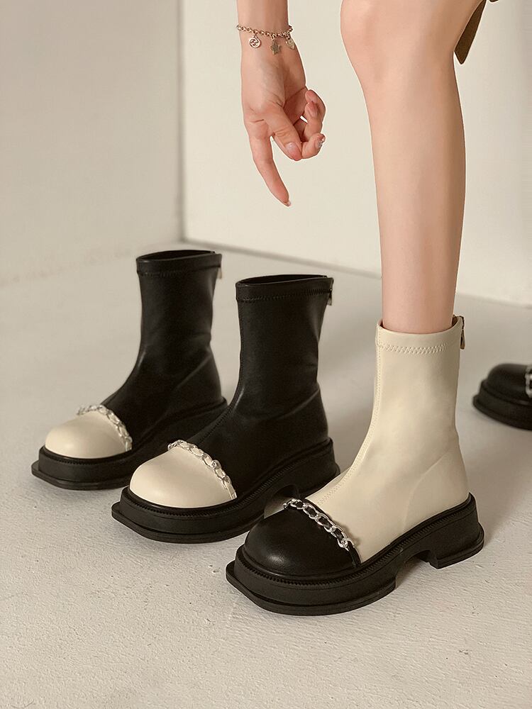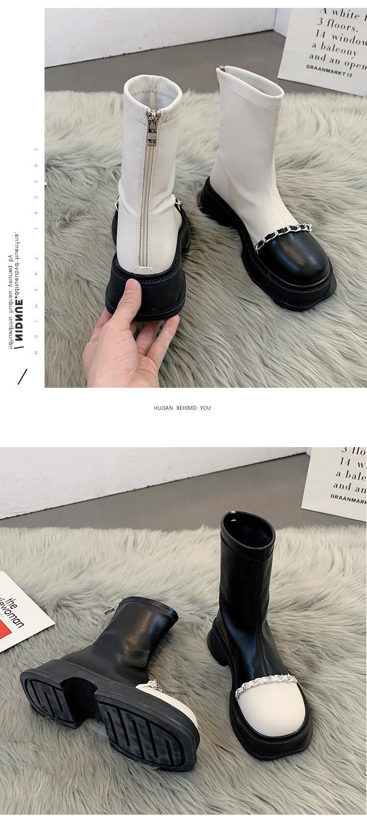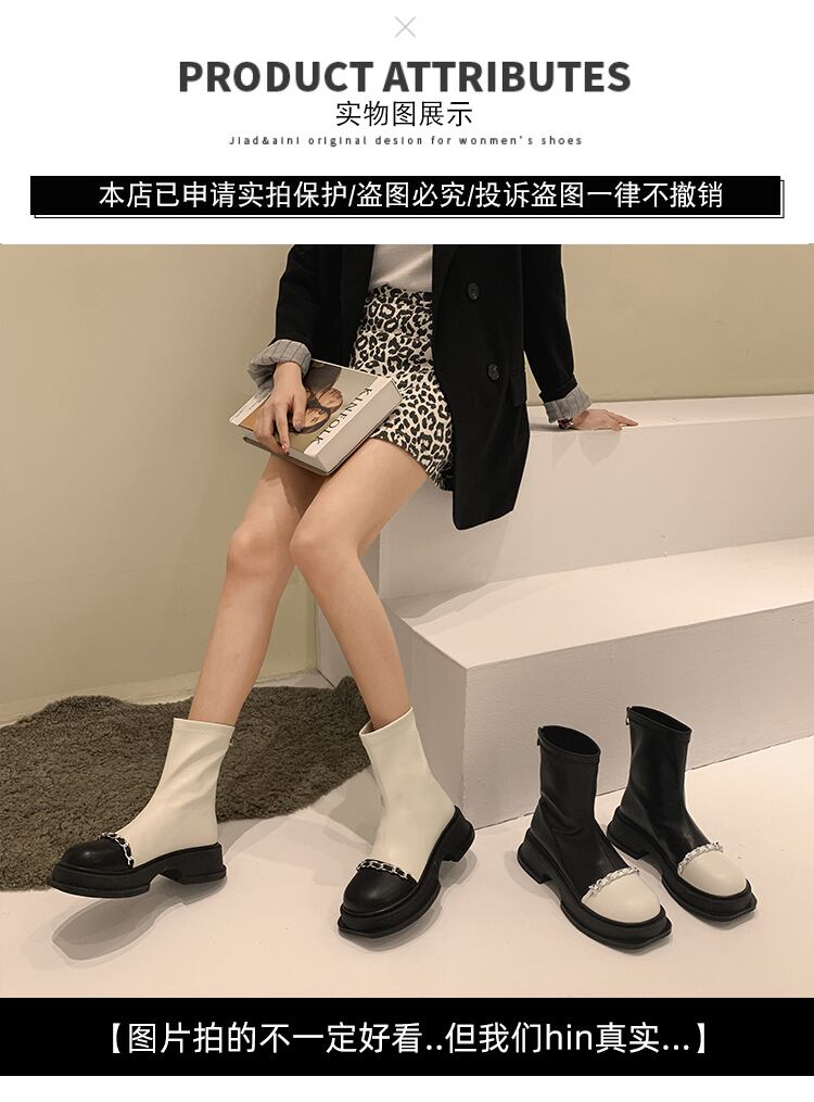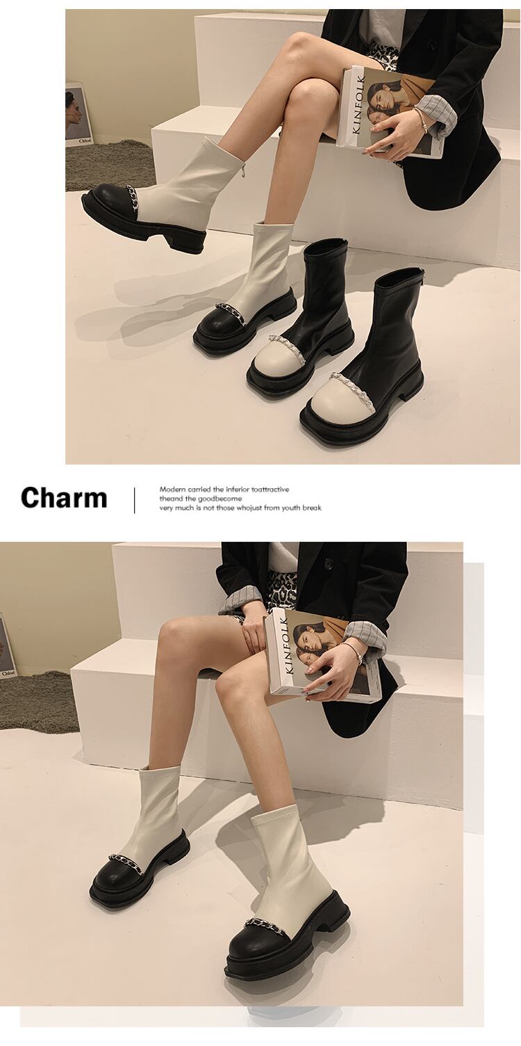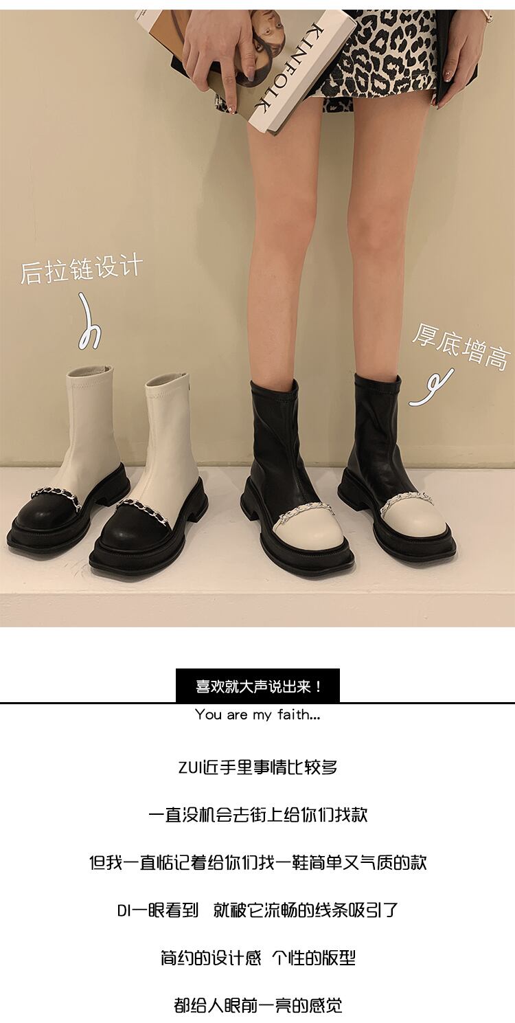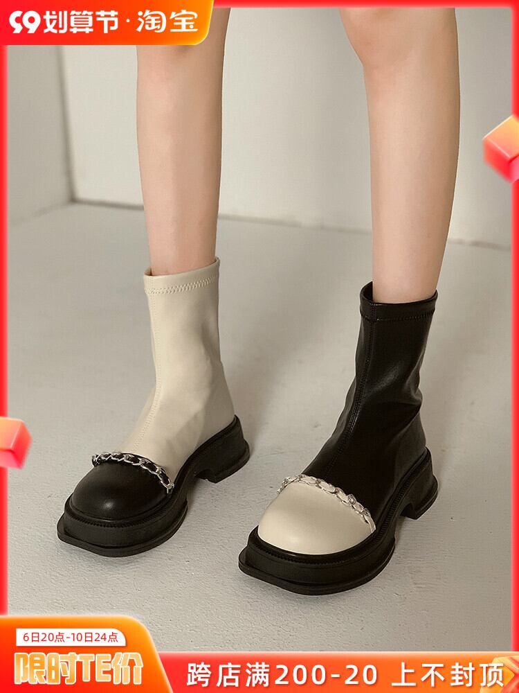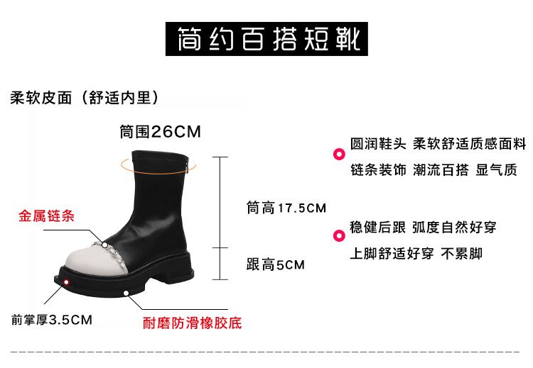 嘉布偽ショートブーツ女性の夏 2022 新チェーンレトロカラーマッチング弾性ブーツショートチューブ小さな薄い薄いブーツ潮秋 靴 シューズ エラスティック 伸縮 サマー 夏物 オータム 秋物 jxjxf98713612526