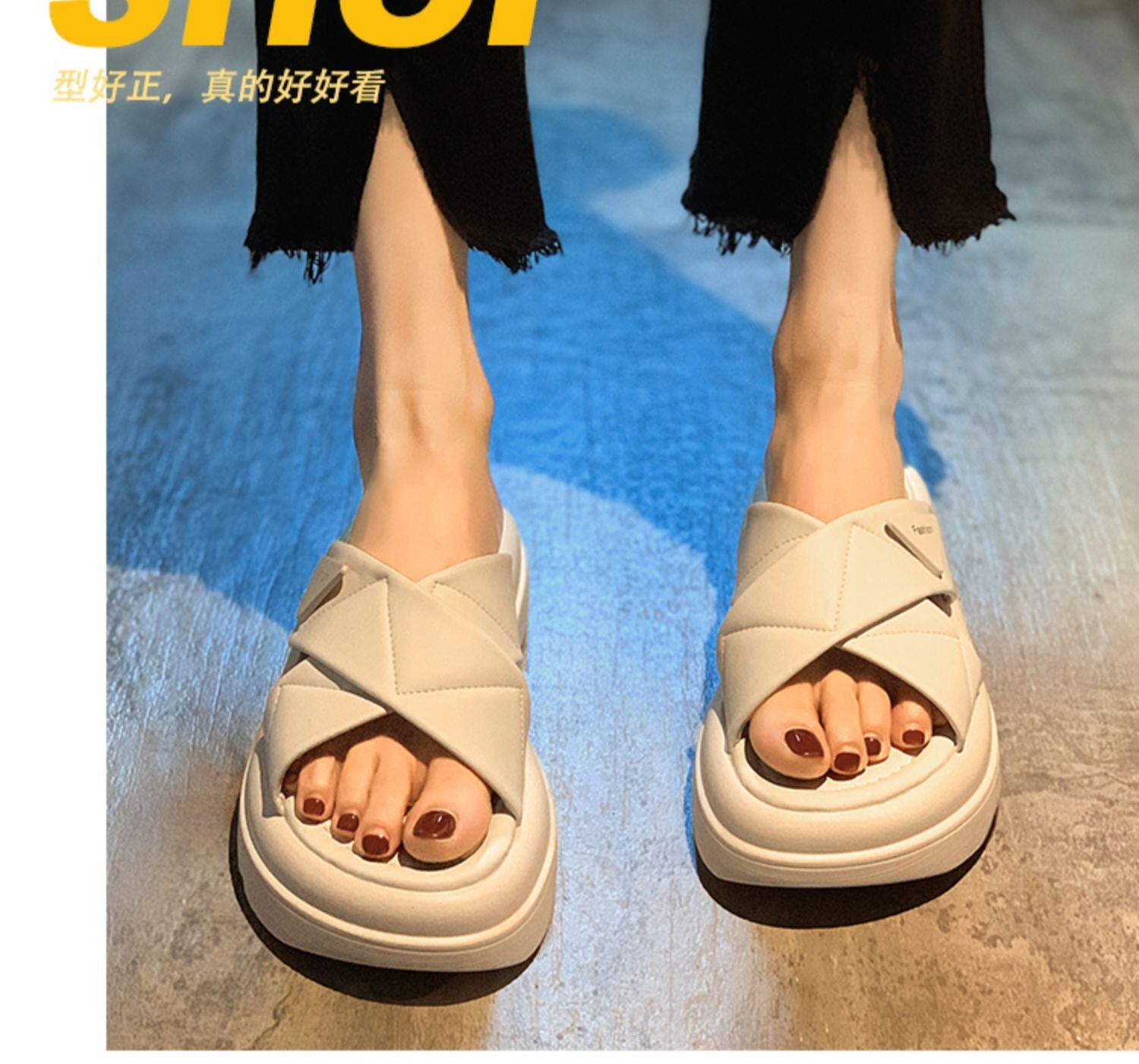 サンダルとスリッパ女性の夏の摩耗 2022 新しいファッションオールマッチ小さなマフィン厚い底ノンスリップカジュアルフリップフロップ ミュール 靴 シューズ サマー 夏物 jxjxf38324028543