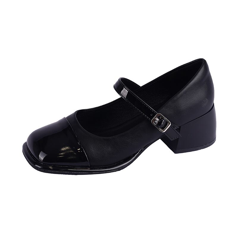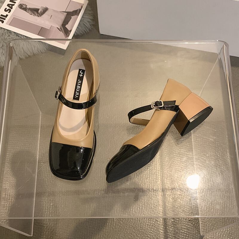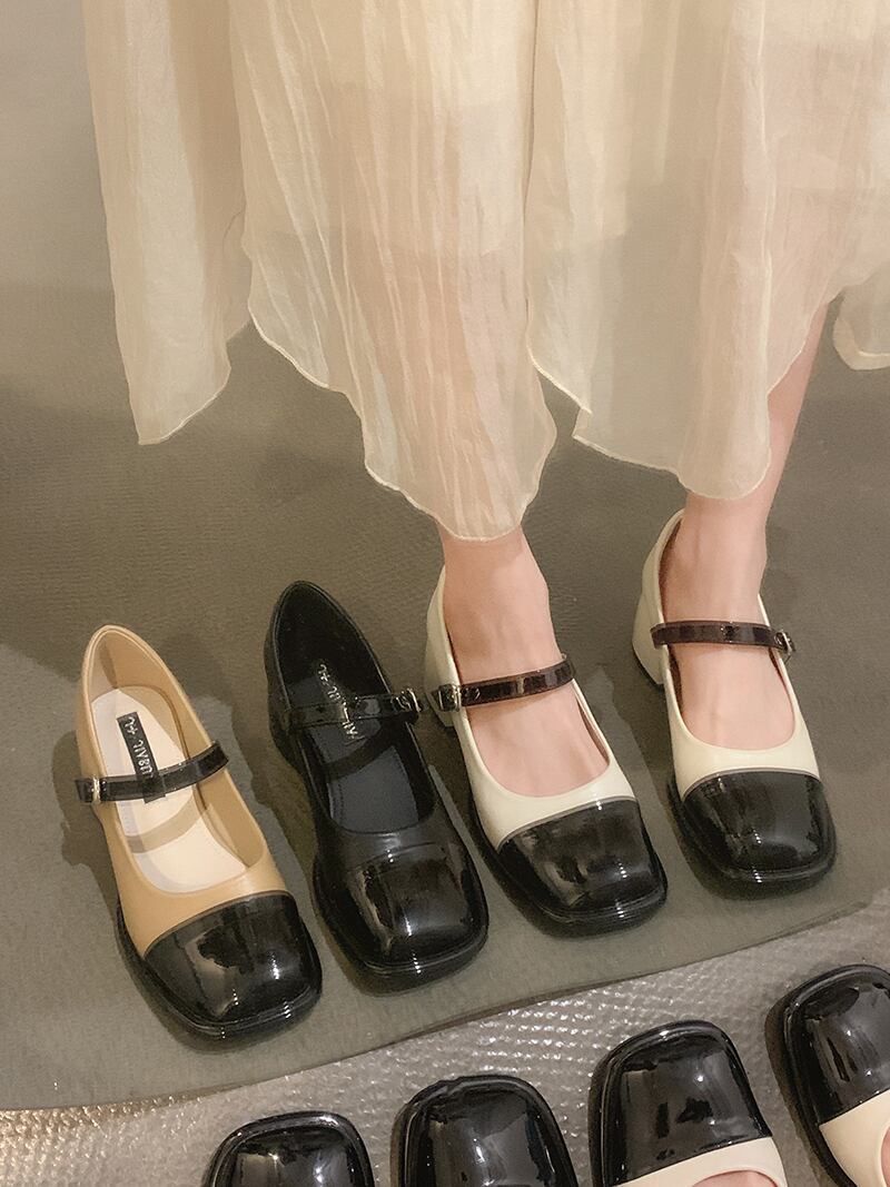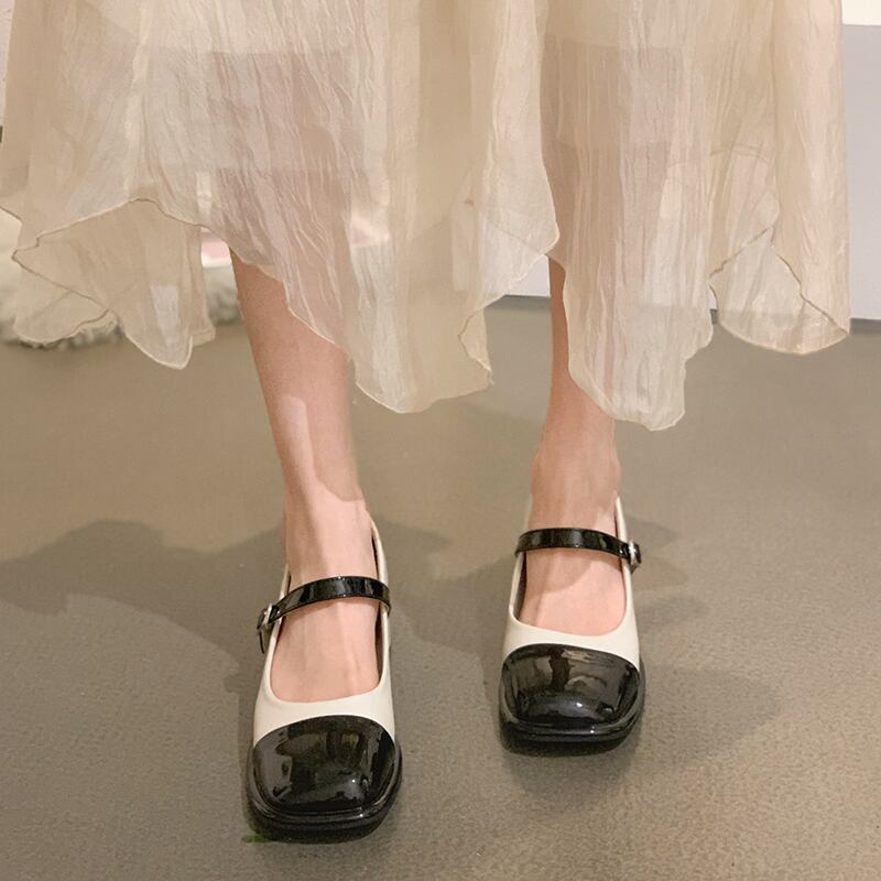 メリージェーンの靴の女性の 2022 夏の新しいイン超ホットすべての試合のレトロな太いヒールの滑り止めの正方形のつま先の小さな革の靴の潮 シューズ サマー 夏物 レザー スクウェア jxjxf22430317599
