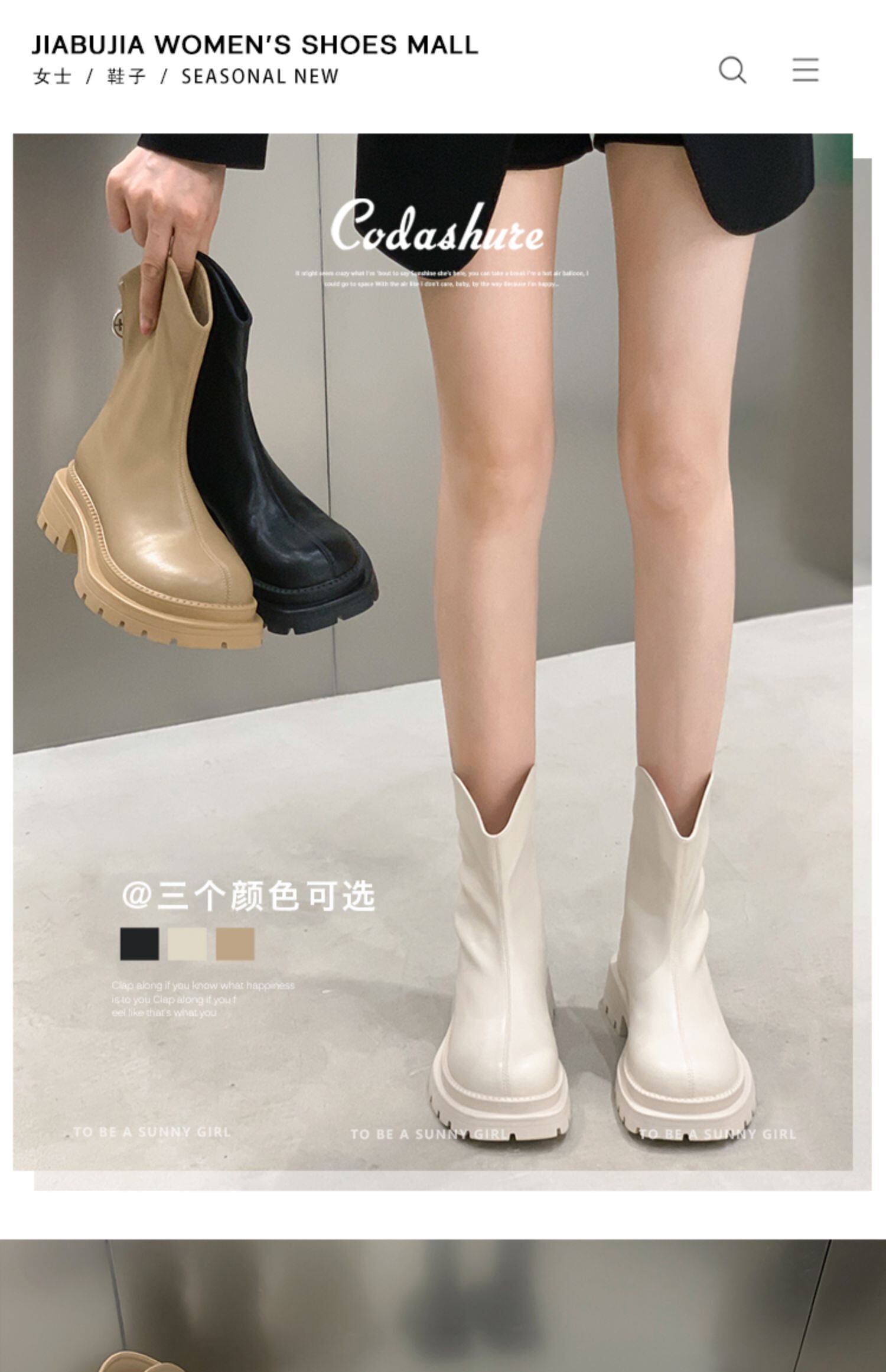 嘉布フェイクショートブーツ女性の 2022 夏の新しいレトロオールマッチ小さなシングルブーツ厚いヒールの春と秋の薄いと薄いブーツのトレンド 靴 シューズ スプリング 春物 サマー 夏物 オータム 秋物 jxjxf58854037440