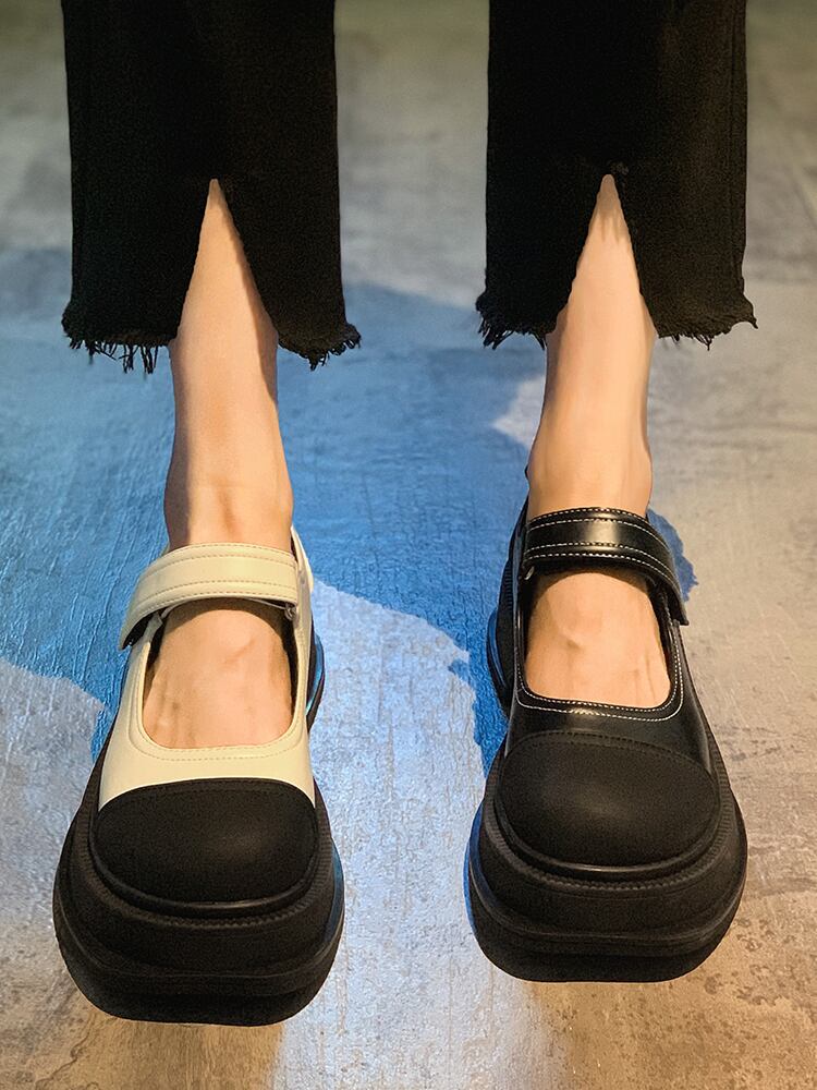 豚の腰の靴の女性の夏 2022 新しいレトロな英国スタイルのファッションの配色厚い底滑り止めメリージェーン小さな革の靴 シューズ サマー 夏物 レザー jxjxf89287103126