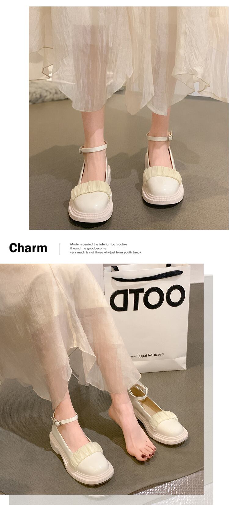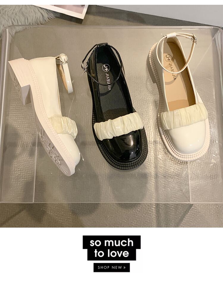 メリージェーンの靴の女性の夏の2022年の新しいフランスのレトロなファッションの西洋スタイルのオールマッチの浅い太いヒールの豚の腰の小さな革の靴 シューズ サマー 夏物 レザー jxjxf35170283166