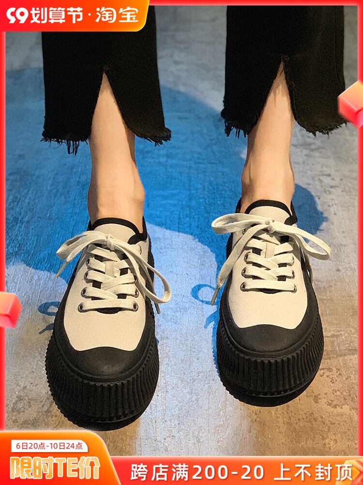 キャンバスシューズの女性の夏モデル 2022 新しいストリートスタイルのファッション野生の学生黒と白の厚底ノンスリップカジュアルビスケットシューズ 靴 ホワイト ブラック サマー 夏物 jxjxf38388202350