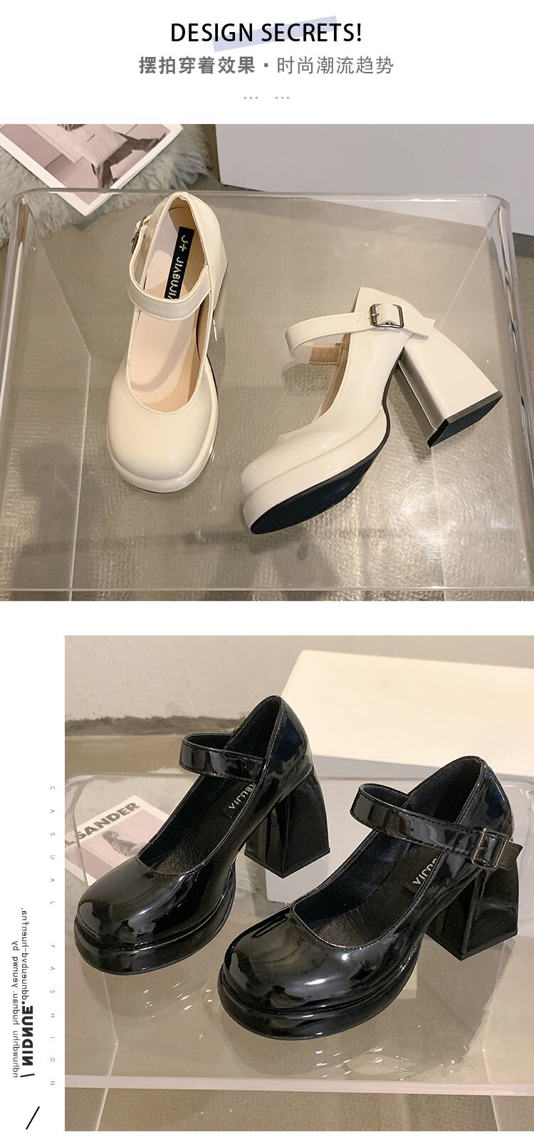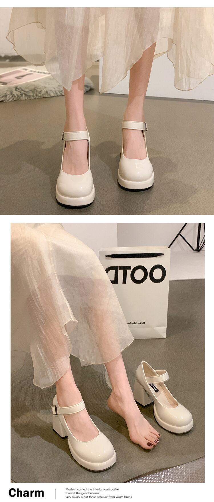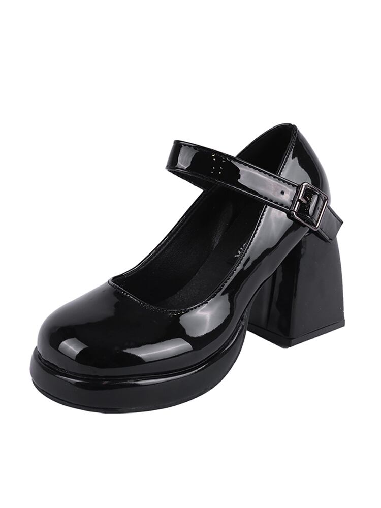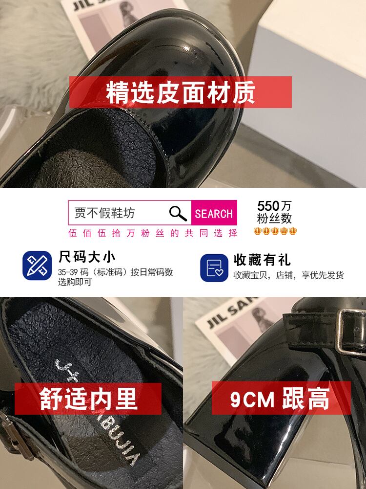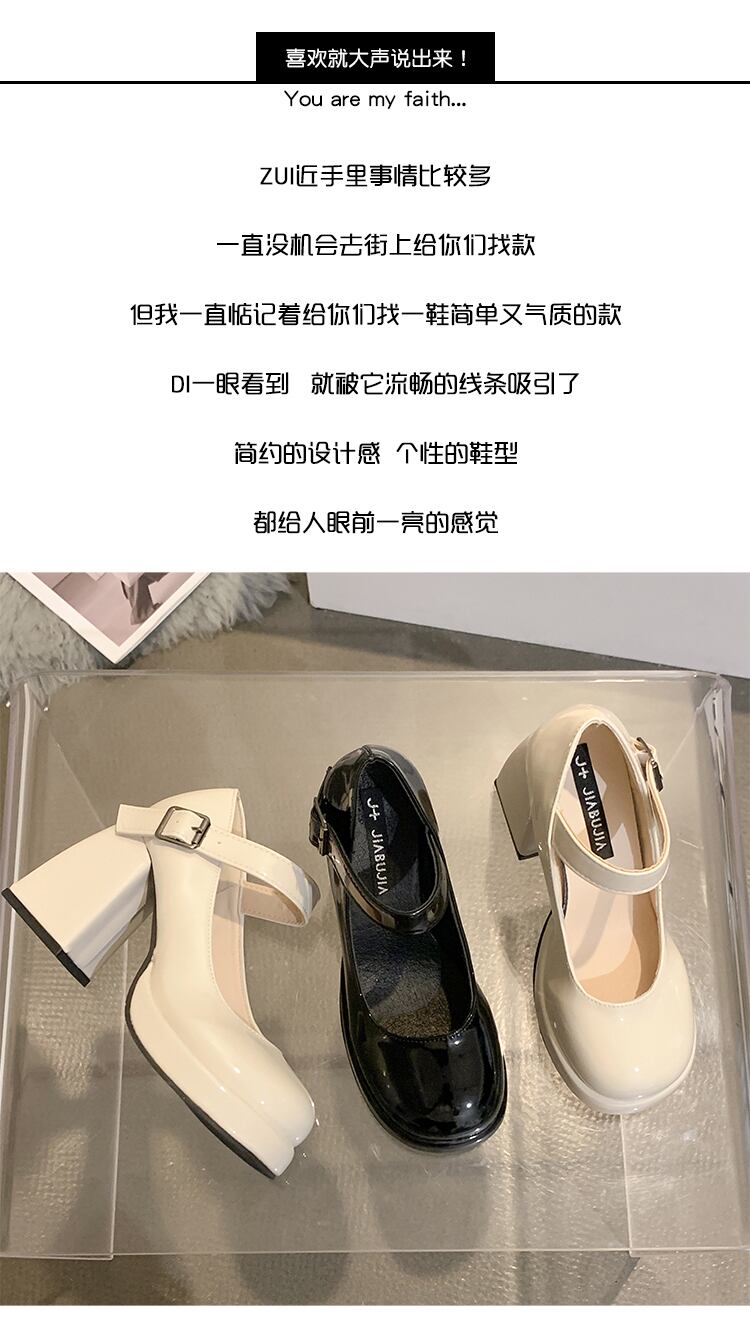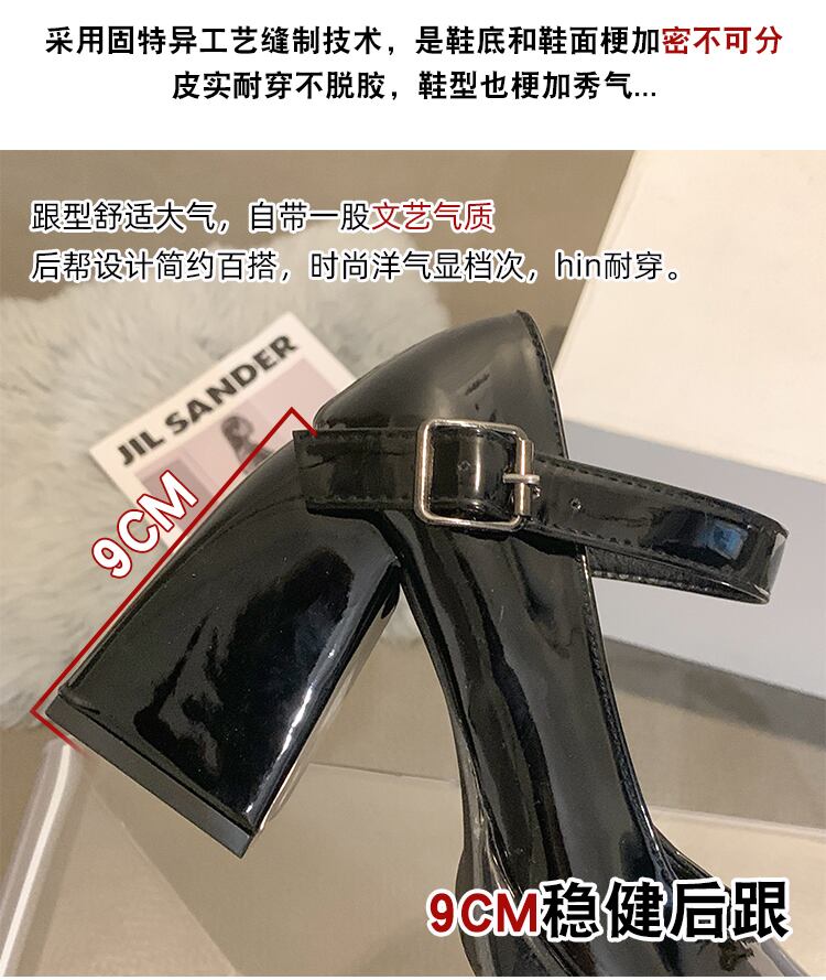 ハイヒールのメリージェーンの靴の女性の 2022 夏の新しいファッションオールマッチ小さな丸頭厚いヒールノンスリップ小さな革の靴 シューズ サマー 夏物 レザー jxjxf77463891317