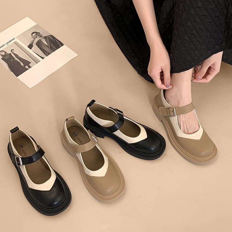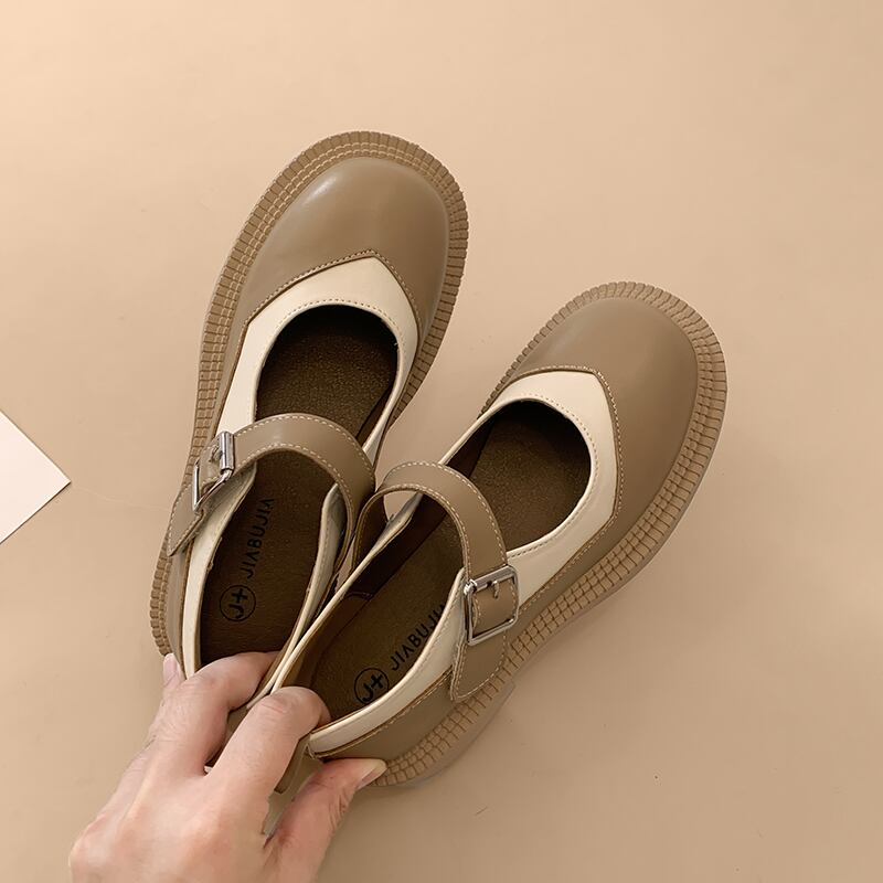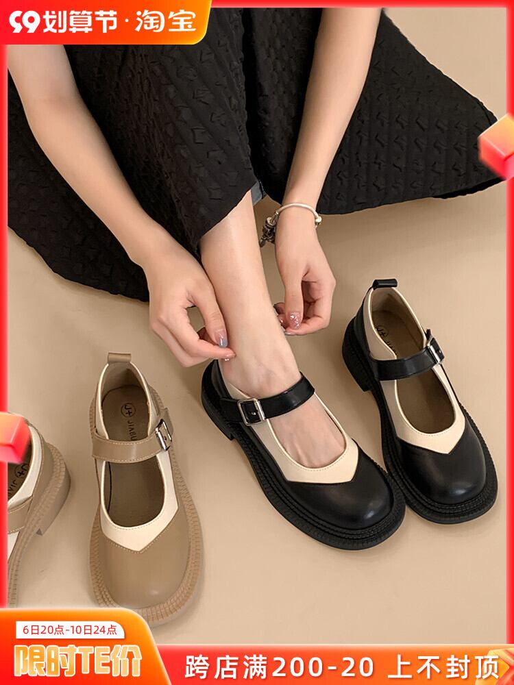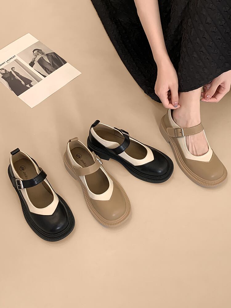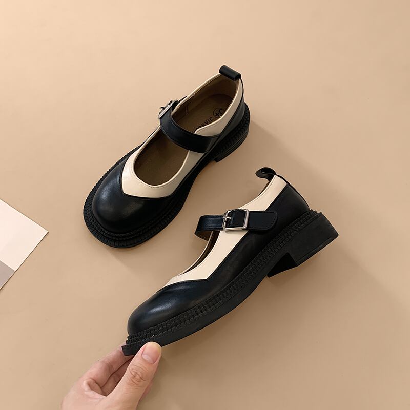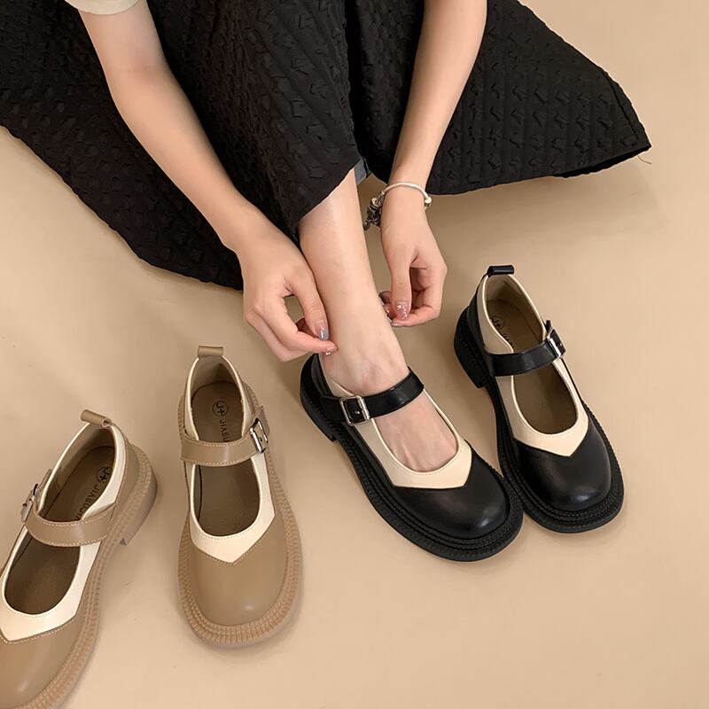 メリージェーンの靴の女性の夏の2022年の新しい日本の配色のファッショントレンドのレトロな野生の厚い底の滑り止めの小さな革の靴 シューズ サマー 夏物 レザー jxjxf69907967041