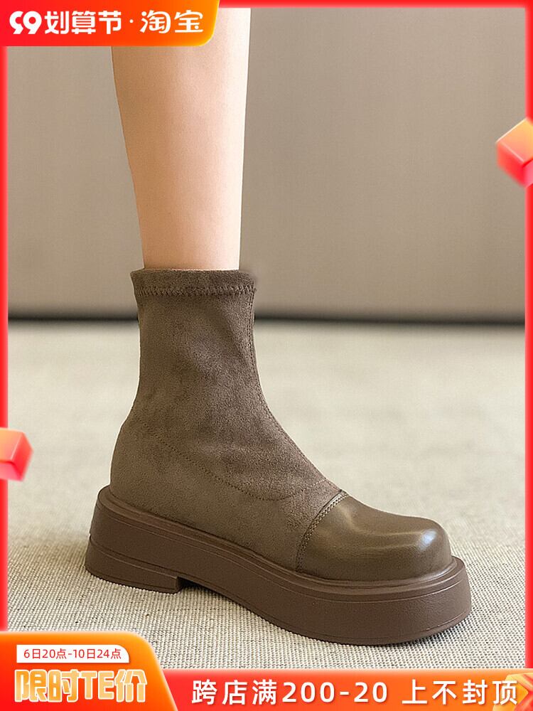 ブーツ夏の女性の 2022 新ファッションオールマッチスエード小さな厚い底英国スタイルショートチューブ薄型薄型ブーツトレンド スウェード 靴 シューズ サマー 夏物 jxjxf7283950390