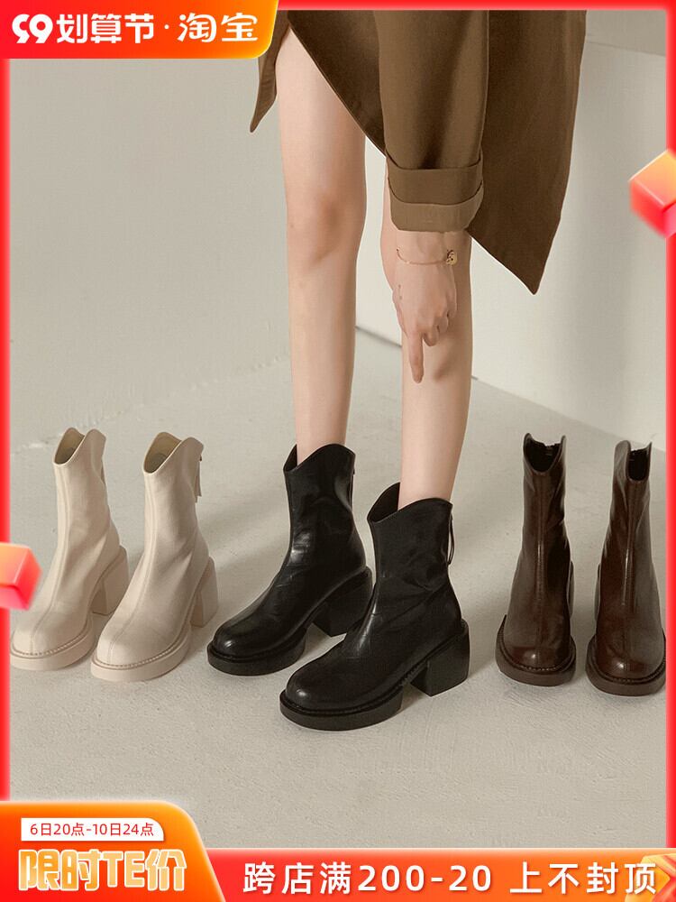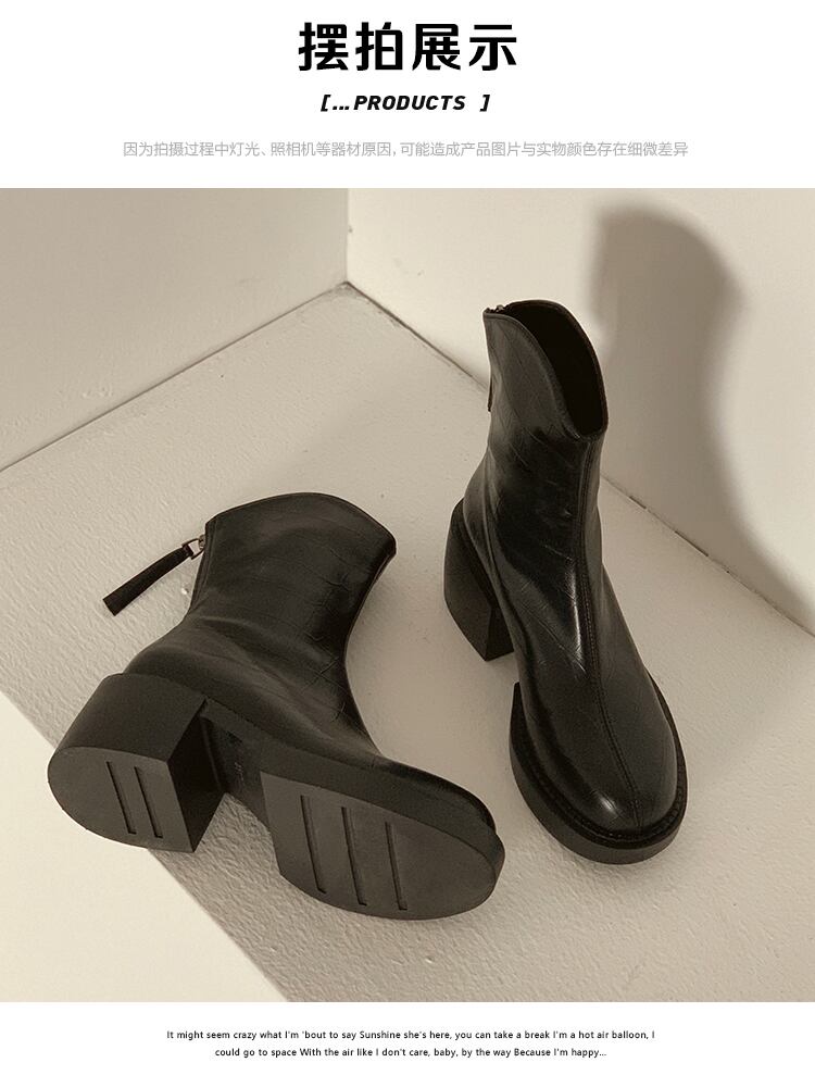 太いヒールのアンクルブーツの女性の春と秋のシングルブーツ 2022 新しいフランスのレトロなファッションカジュアルオールマッチハイヒール弾性薄いブーツ 靴 シューズ エラスティック 伸縮 スプリング 春物 オータム 秋物 jxjxf97147279833