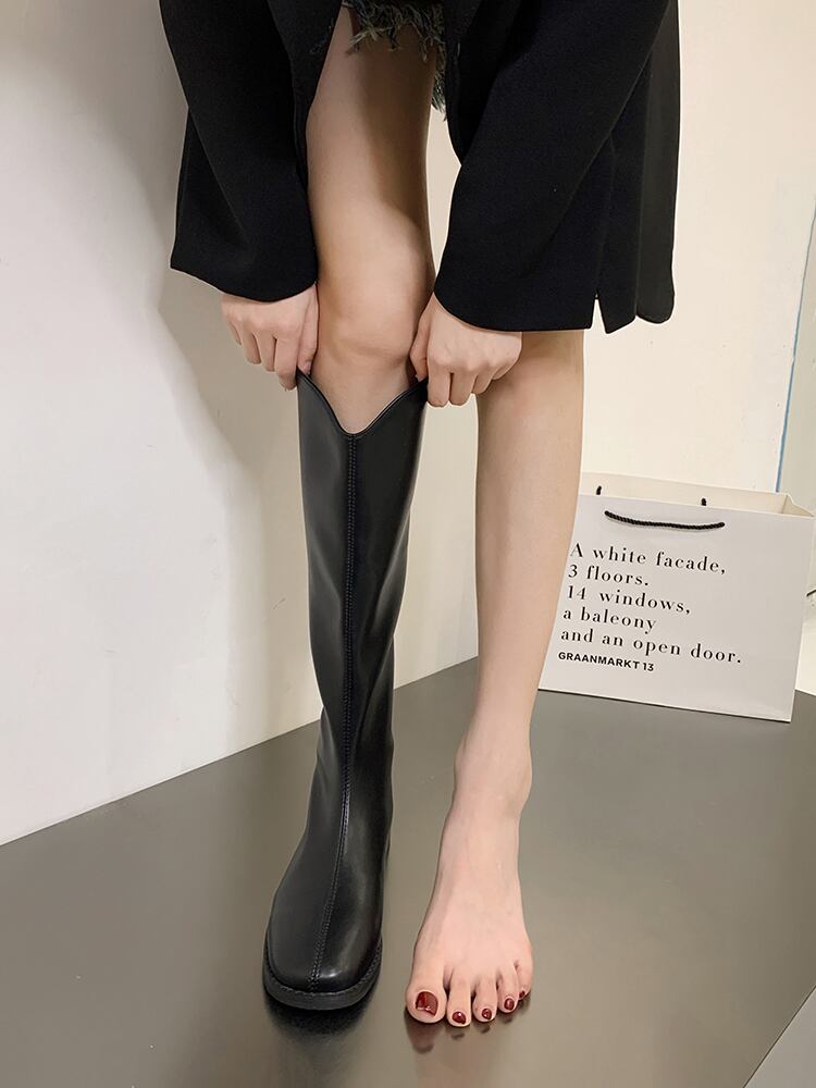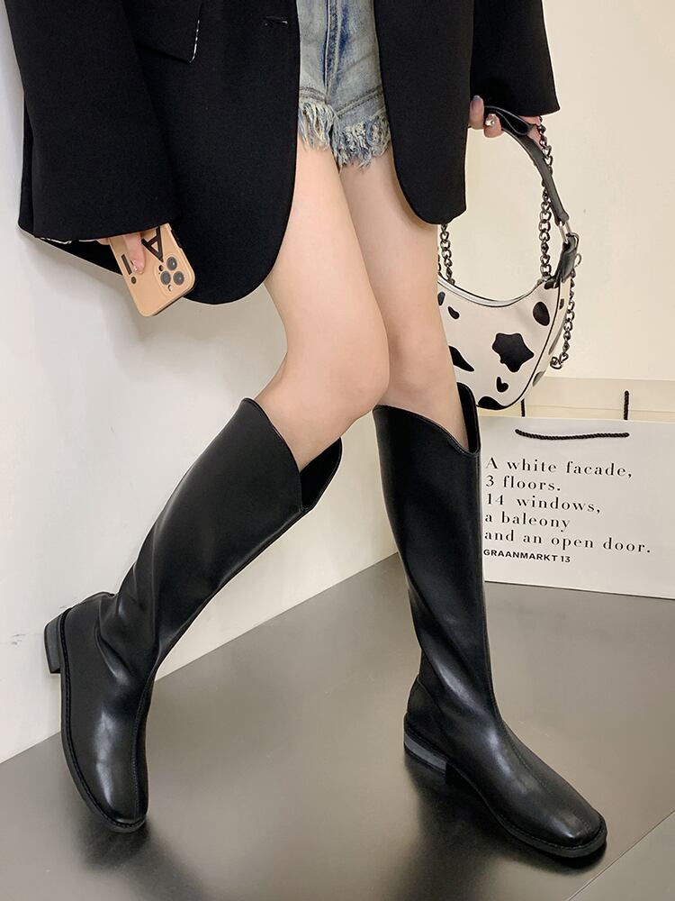 騎士のブーツロングブーツ女性の 2022 夏の新しいフランスのレトロなハンサムな小さなフラットカジュアルな薄いブーツ 靴 シューズ サマー 夏物 jxjxf60954013536