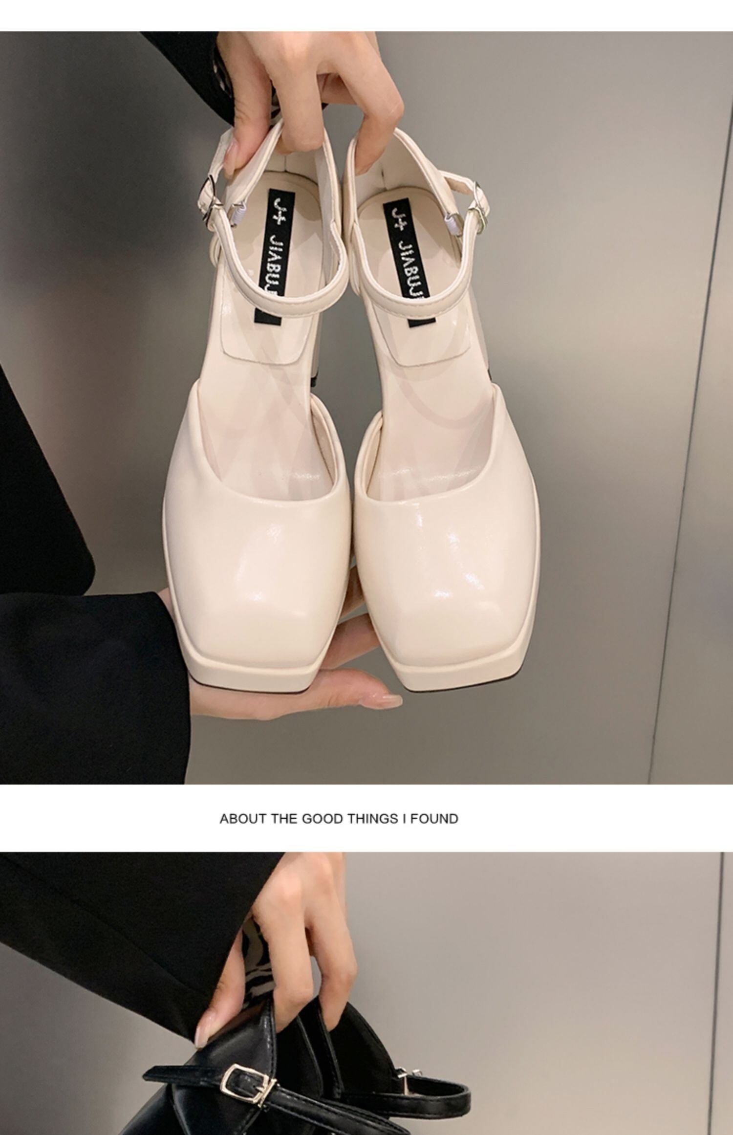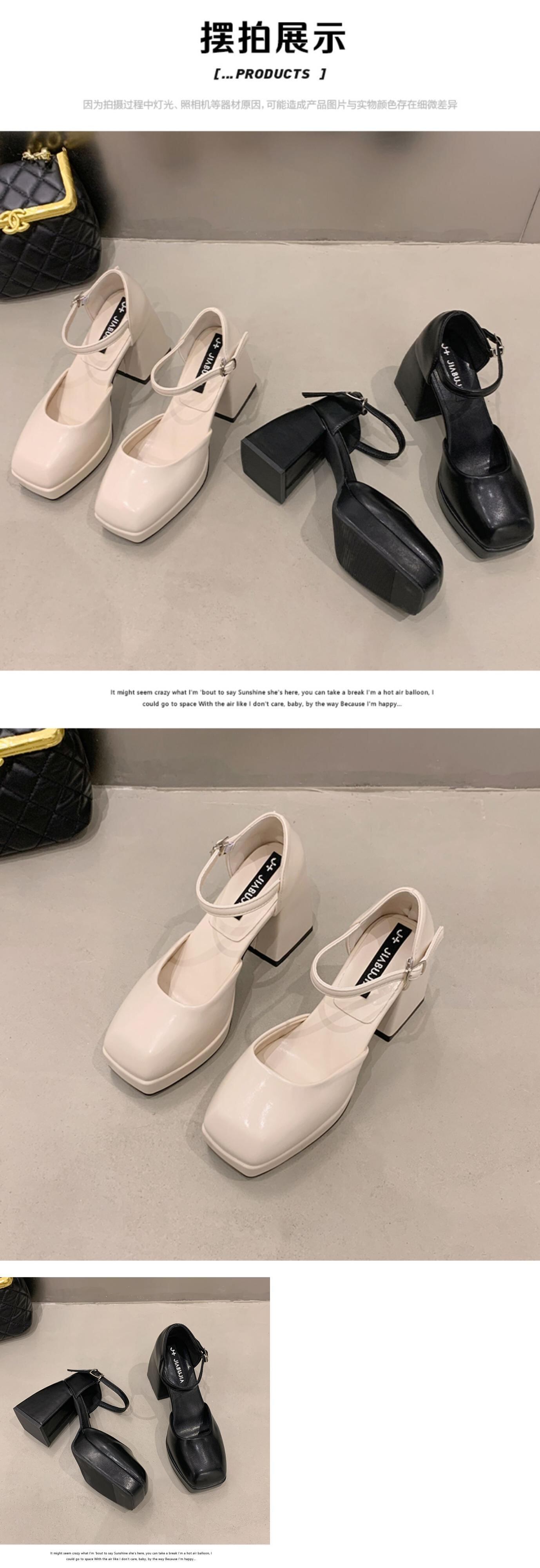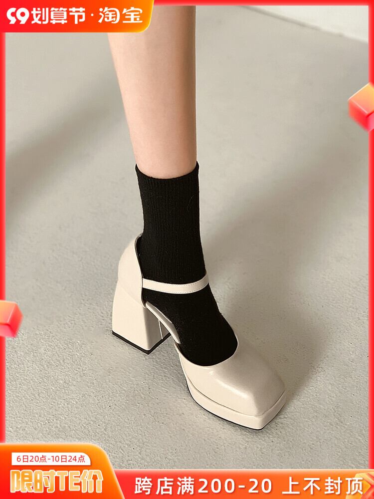 メリージェーンの女性の靴は2022年秋に新しいスーパーホットオールマッチの小さな四角い頭の厚いヒールの高いヒールのレトロな小さな革の靴 シューズ ハイヒール レザー スクウェア jxjxf60314741524