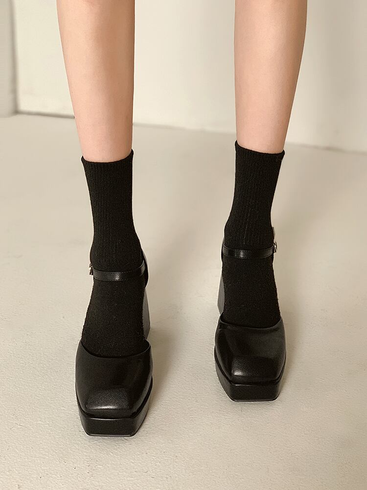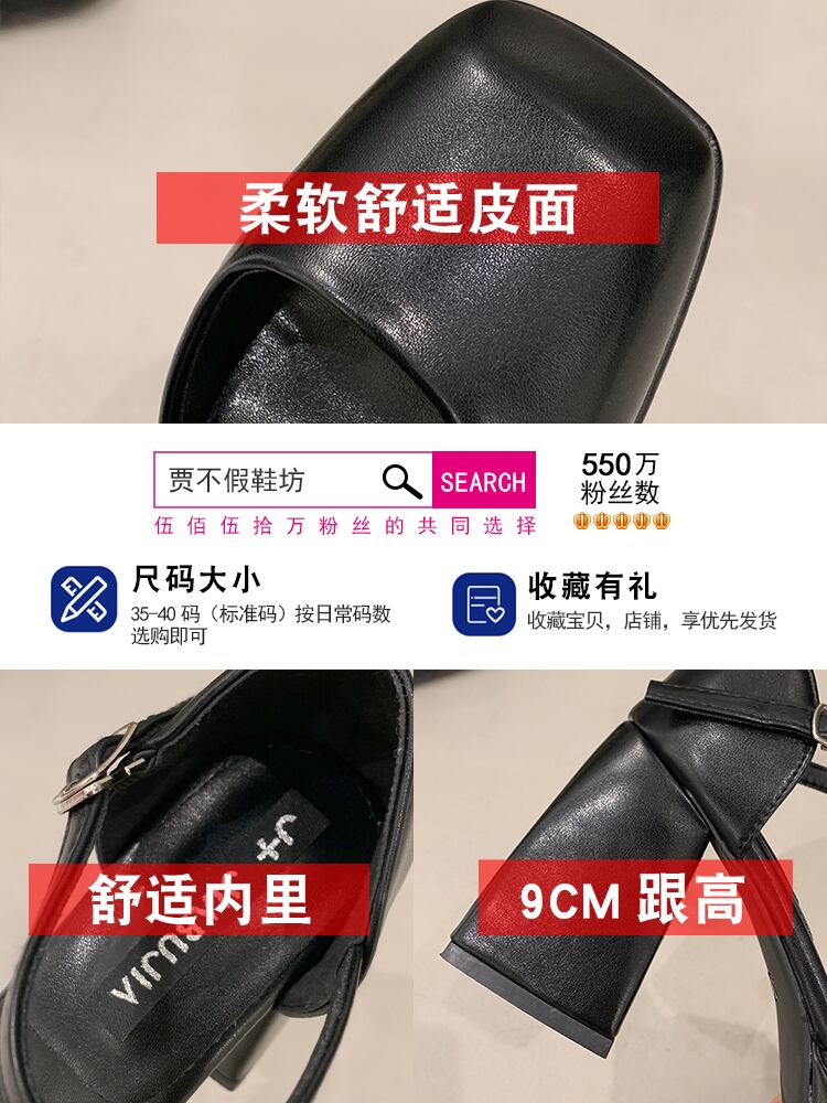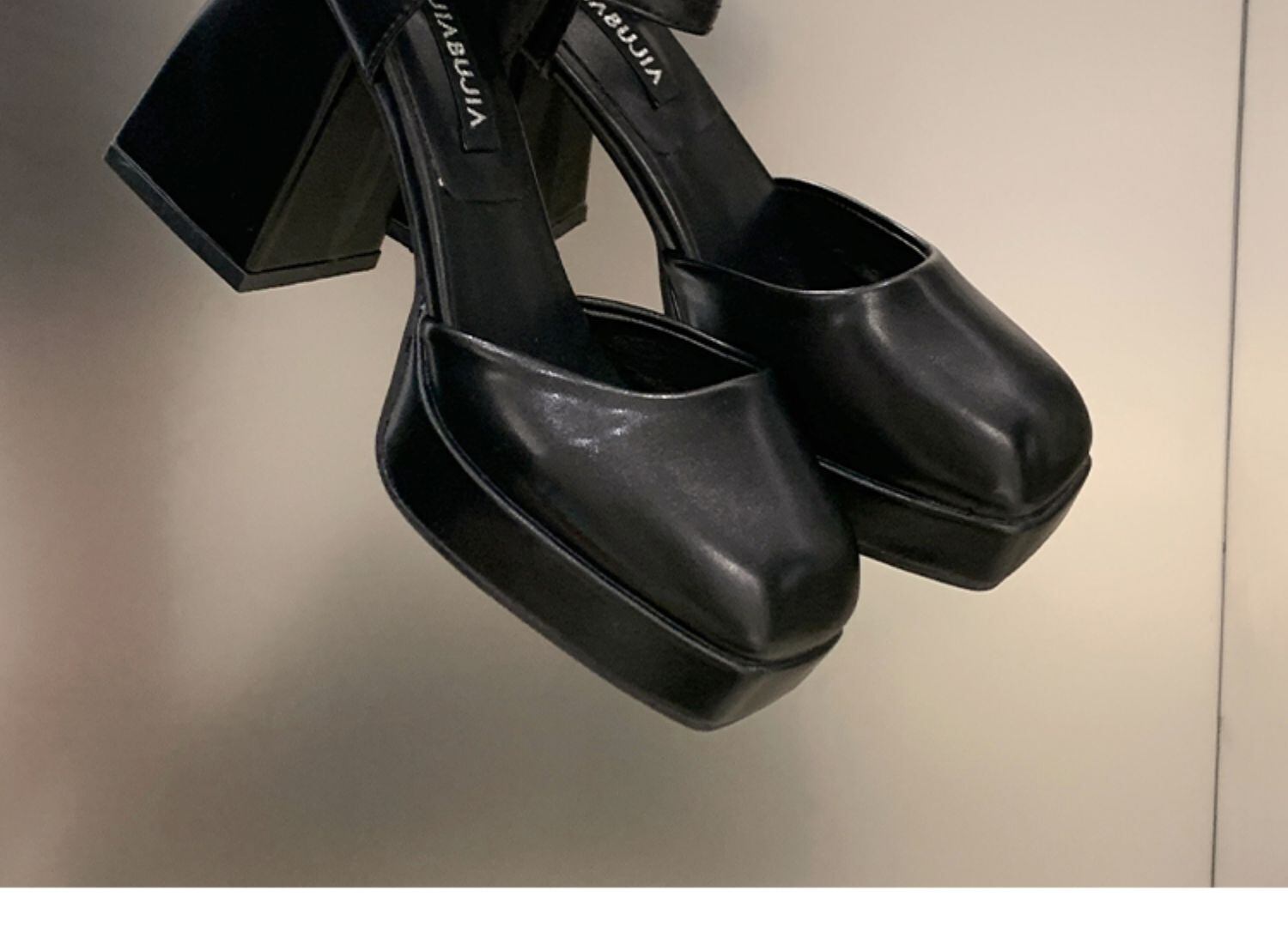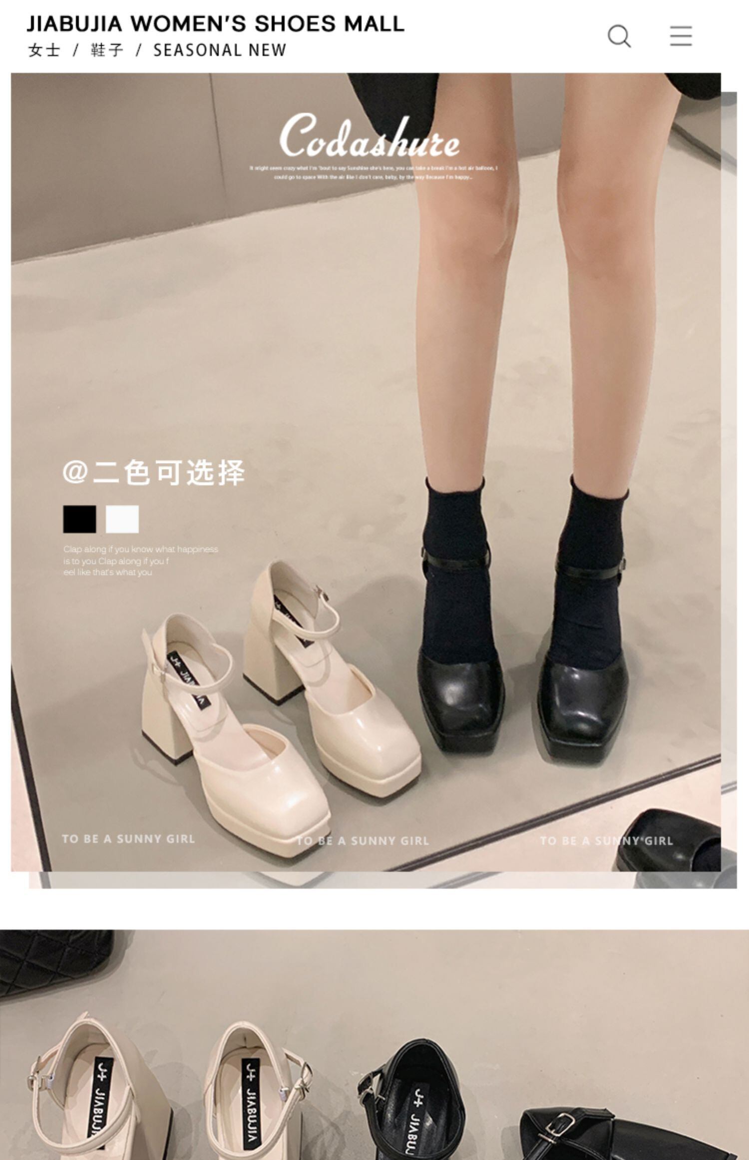 メリージェーンの女性の靴は2022年秋に新しいスーパーホットオールマッチの小さな四角い頭の厚いヒールの高いヒールのレトロな小さな革の靴 シューズ ハイヒール レザー スクウェア jxjxf60314741524