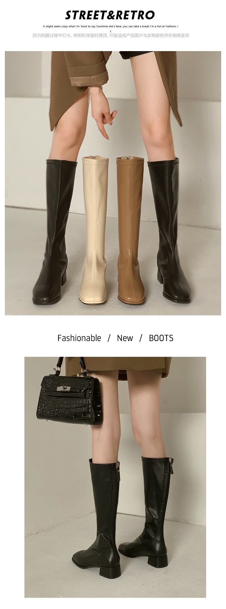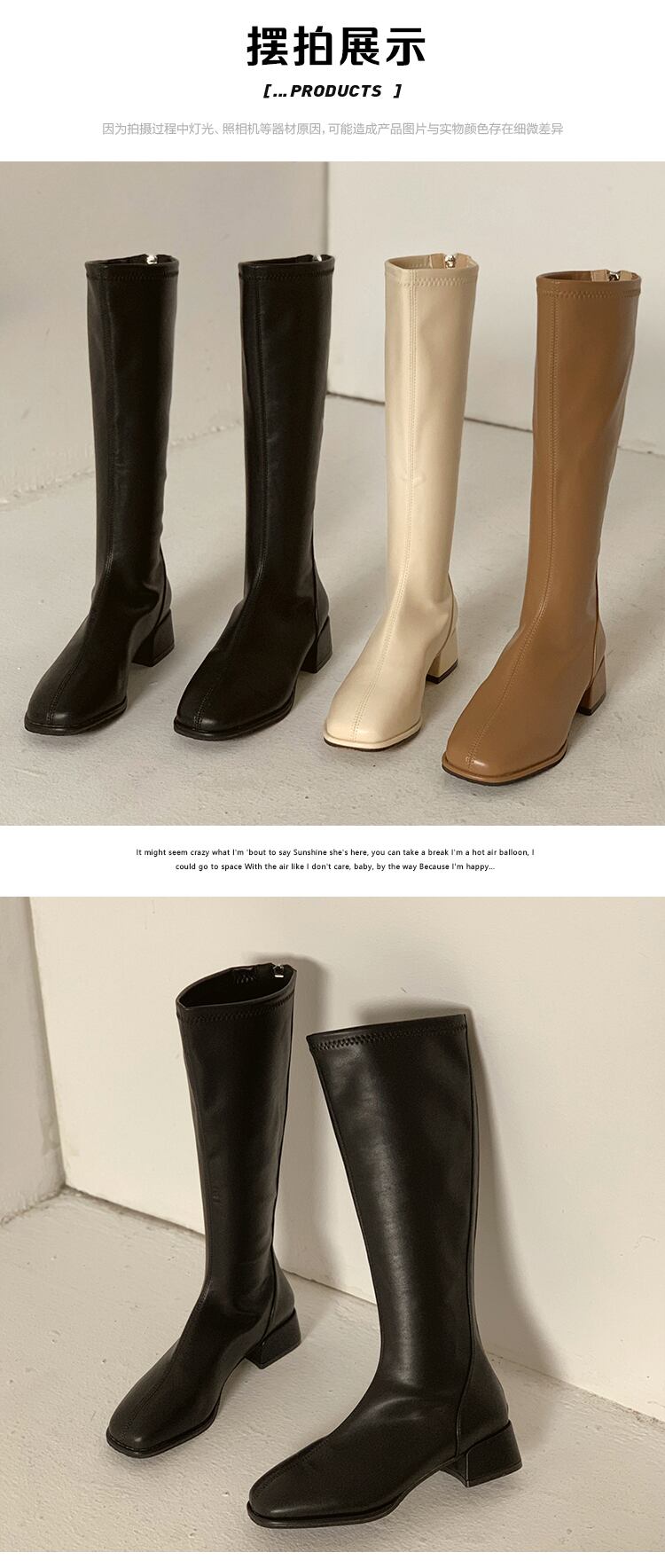 だけどニーブーツ レディース 2022夏 新作ファッション オールマッチ レトロ 薄い 太いヒール スクエアトゥ 薄いブーツ 靴 シューズ サマー 夏物 スクウェア jxjxf60267547896