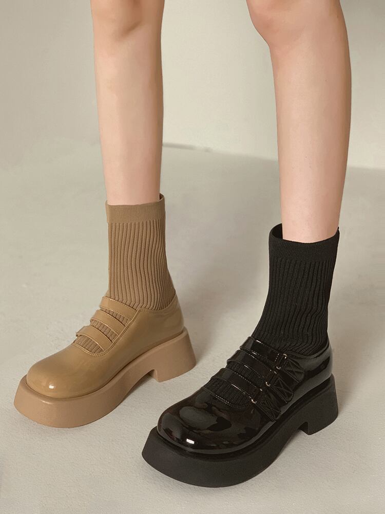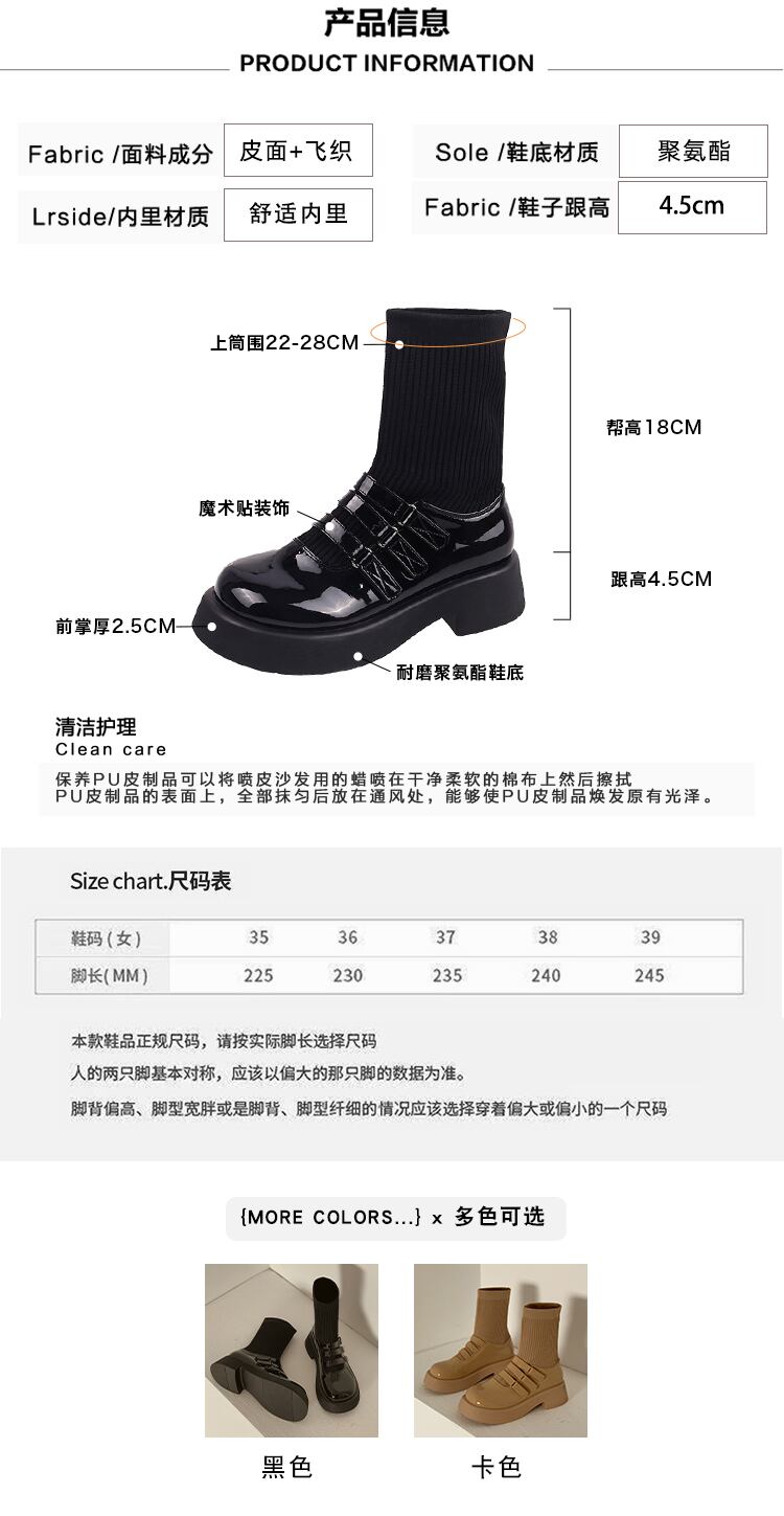 厚底メリージェーンソックスブーツ女性の 2022 秋の新フレンチレトロ小さな妖精風ニット弾性アンクルブーツ 靴 シューズ エラスティック 伸縮 オータム 秋物 タイツ ストッキング jxjxf92704754219