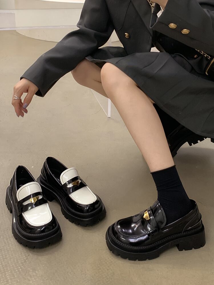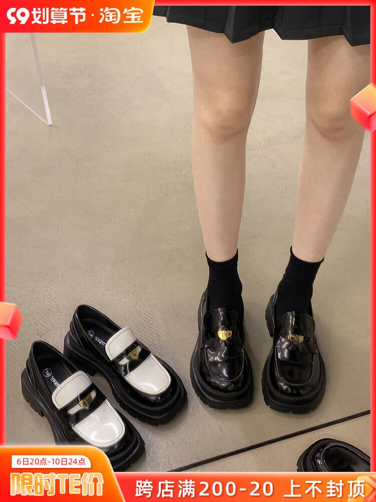 単一の靴の女性の 2022 年の新しい夏の英国スタイルのレトロな気質の通勤カジュアル オールマッチ厚い底ノンスリップ小さな革靴 シューズ サマー 夏物 レザー jxjxf43609690406