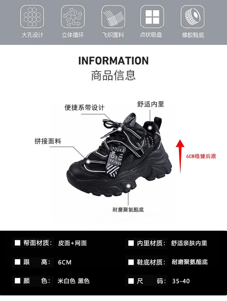 お父さんの靴の女性の 2022 夏の新しいファッション オールマッチ小さな厚い底ノンスリップ通気性潮クール スニーカー シューズ サマー 夏物 jxjxf85448321835