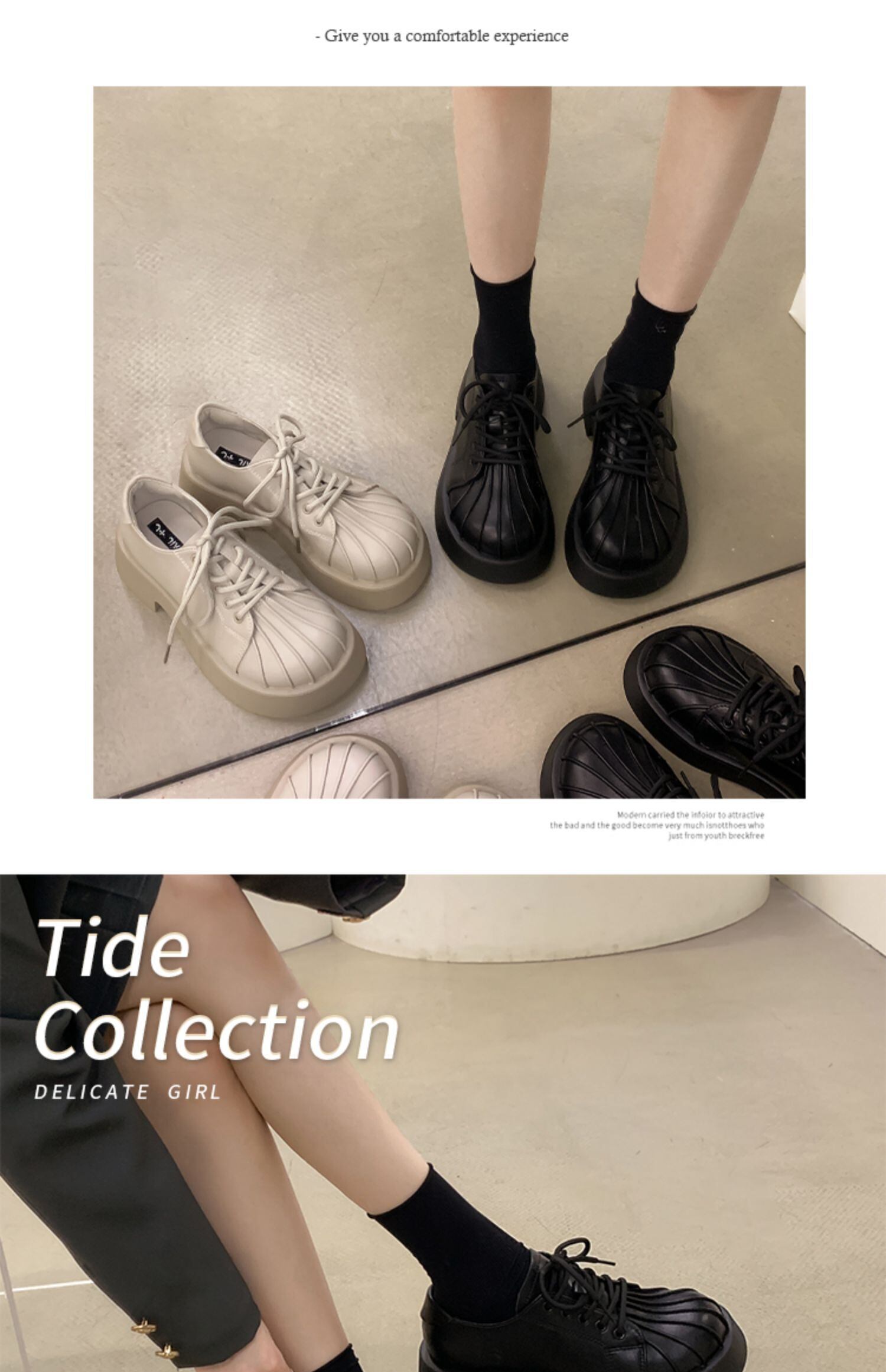 小さな革の靴の女性の春と秋の 2022 年の新しい秋のファッションのレトロなカジュアルなオールマッチの小さなマフィンの厚底靴 シューズ スプリング 春物 オータム 秋物 レザー jxjxf15599487517