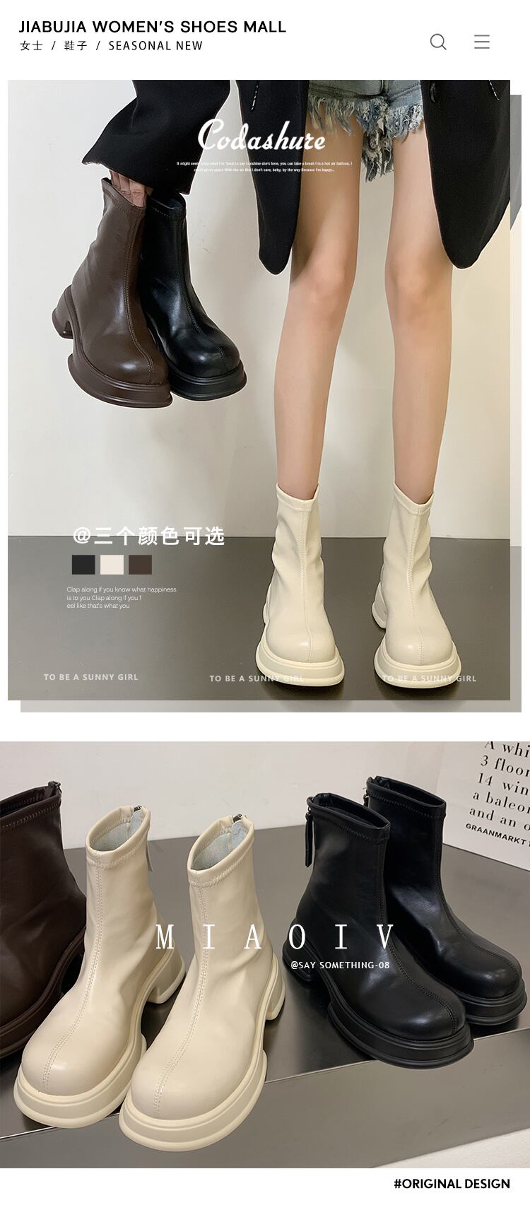 フランスのショートブーツの女性の秋 2022 新ファッションレトロな野生の太いヒールノンスリップホワイト弾性薄いブーツ秋 靴 シューズ エラスティック 伸縮 オータム 秋物 jxjxf5468706538