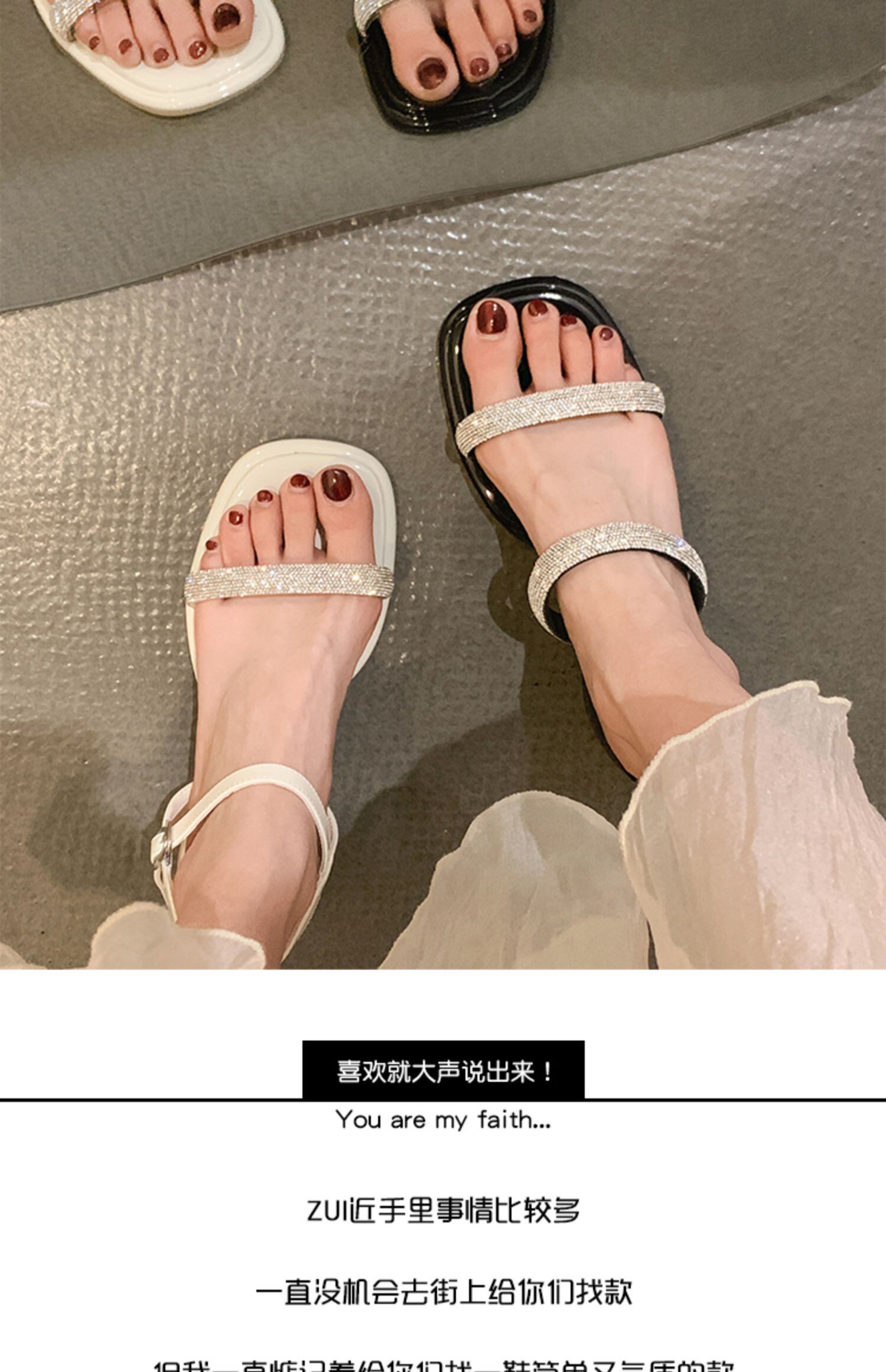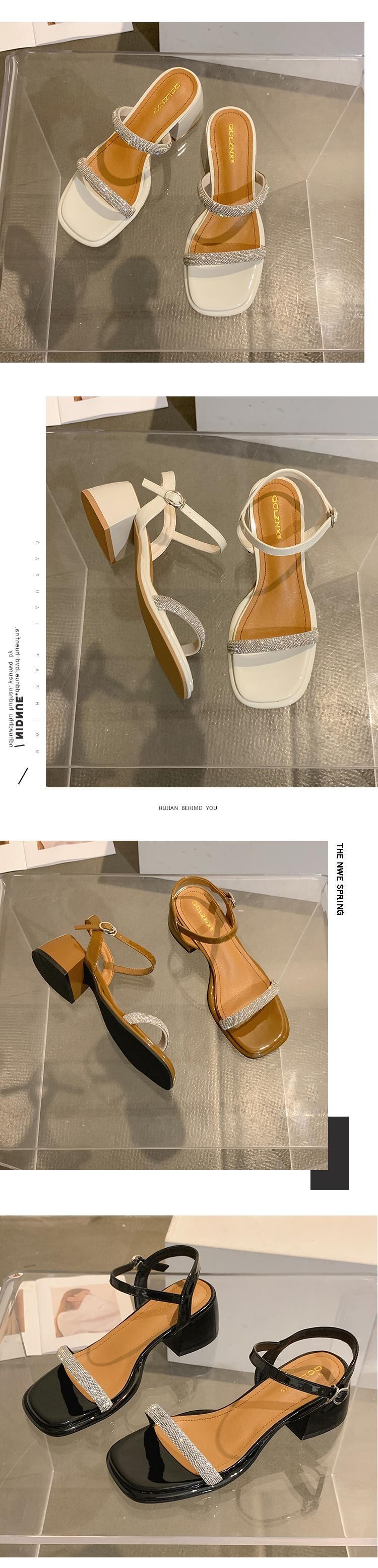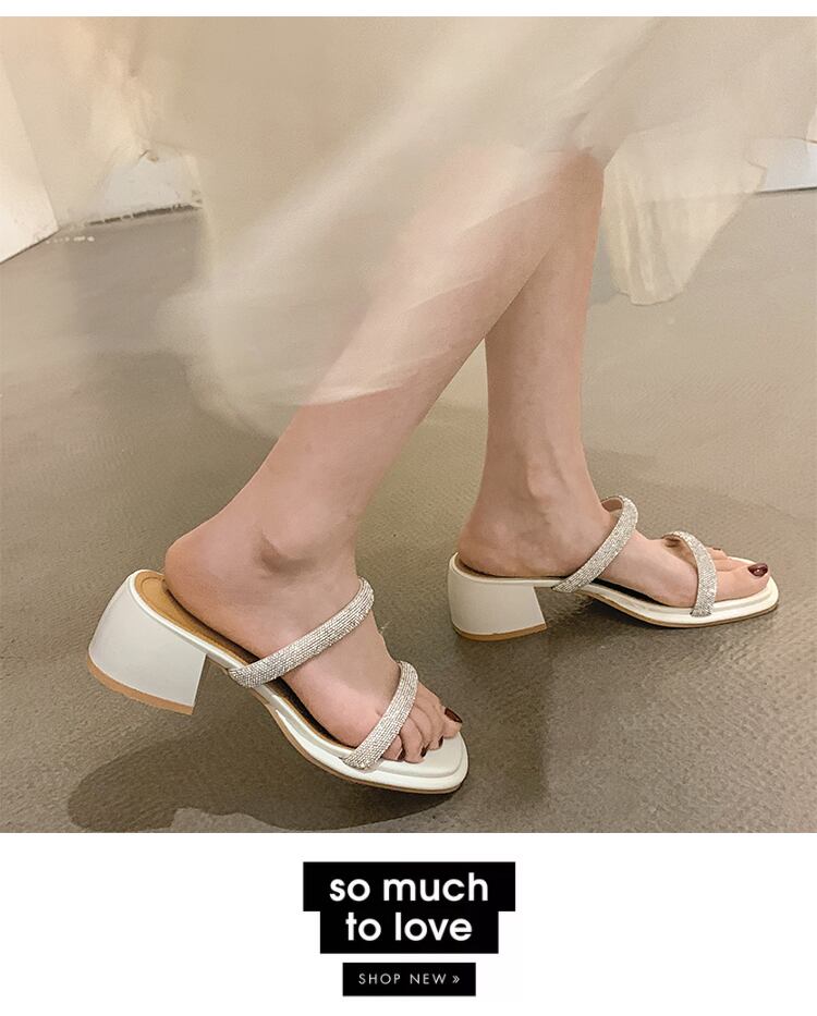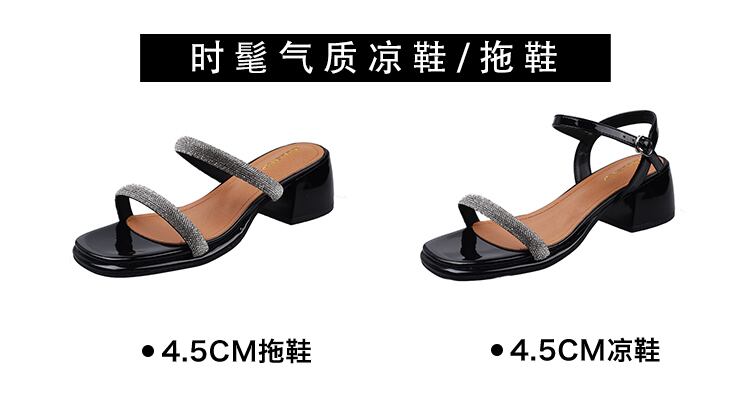 ラインストーン ワード バックル サンダル女性の 2022 夏の新しい太いヒール滑り止めファッション オールマッチ優しいレトロ ハイヒール 靴 シューズ サマー 夏物 jxjxf71130658840
