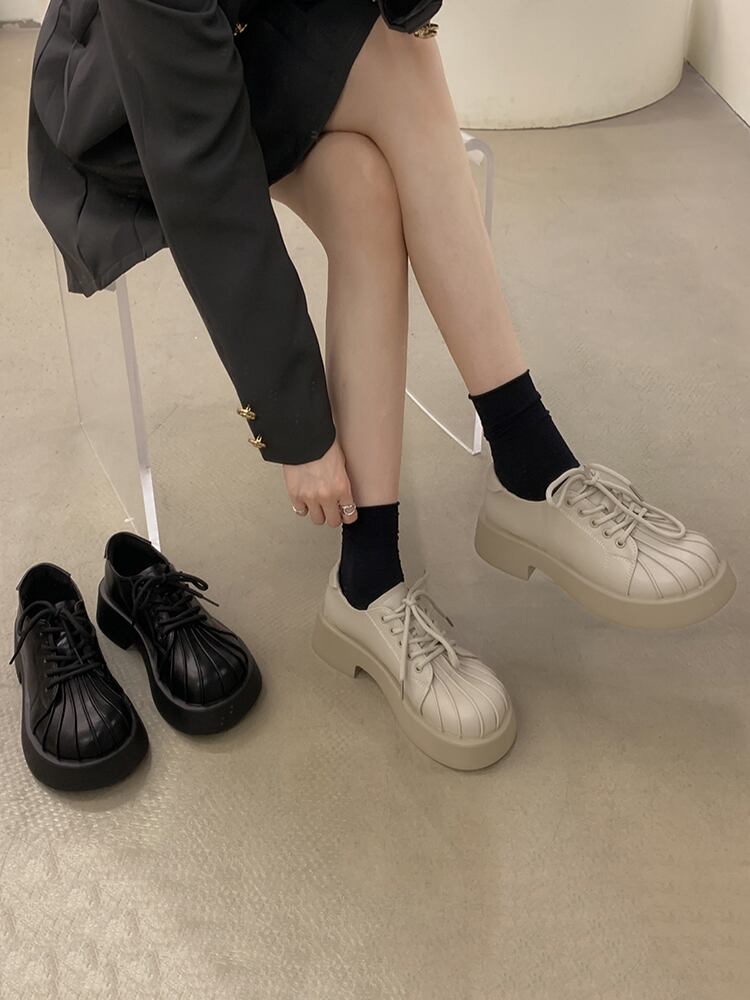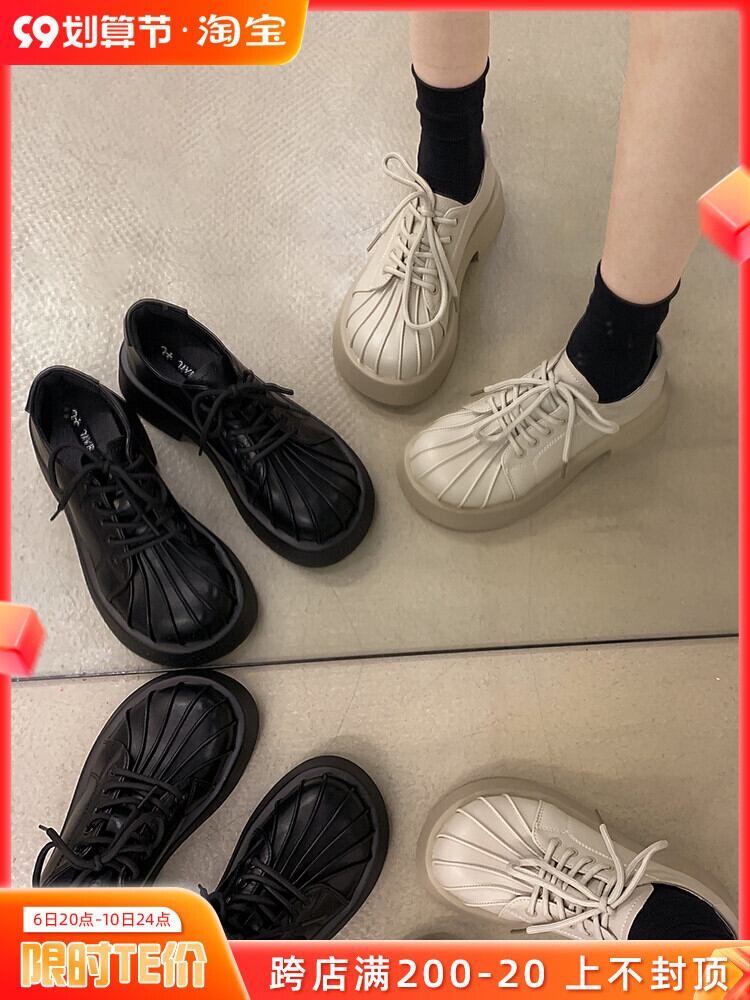 単一の靴の女性の 2022 夏の新しいスポーツとレジャーのオールマッチの厚い底の滑り止めの丸い頭のレトロな黒の小さな革の靴の潮 シューズ ブラック サマー 夏物 レザー jxjxf61713629308