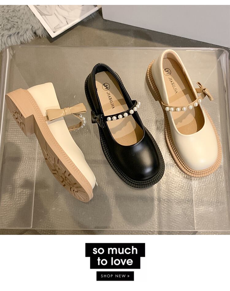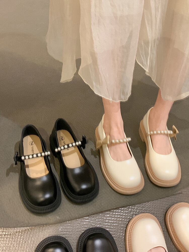 フランスのメリージェーンの靴の女性の夏 2022 新しい穏やかなレトロなファッションカジュアルな浅い口の厚いヒールの滑り止めの小さな革の靴 シューズ サマー 夏物 レザー jxjxf40534336838
