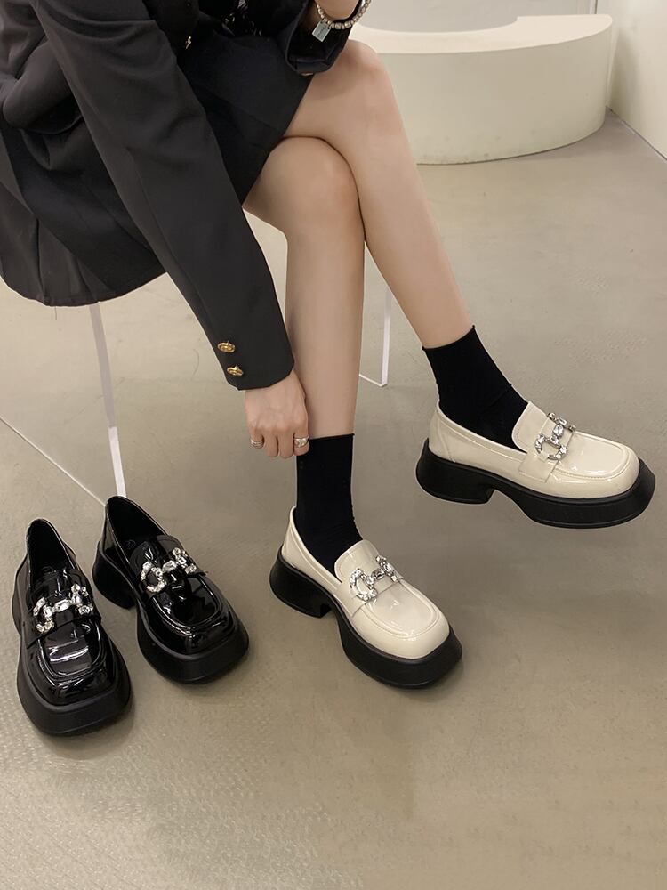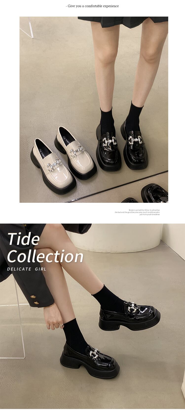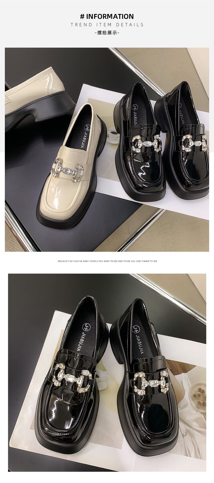 厚い底の小さな革の靴の女性の2022年秋の新しい英国のレトロなラインストーンのハイヒールの気質通勤オールマッチローファー シューズ オータム 秋物 レザー jxjxf98412993245