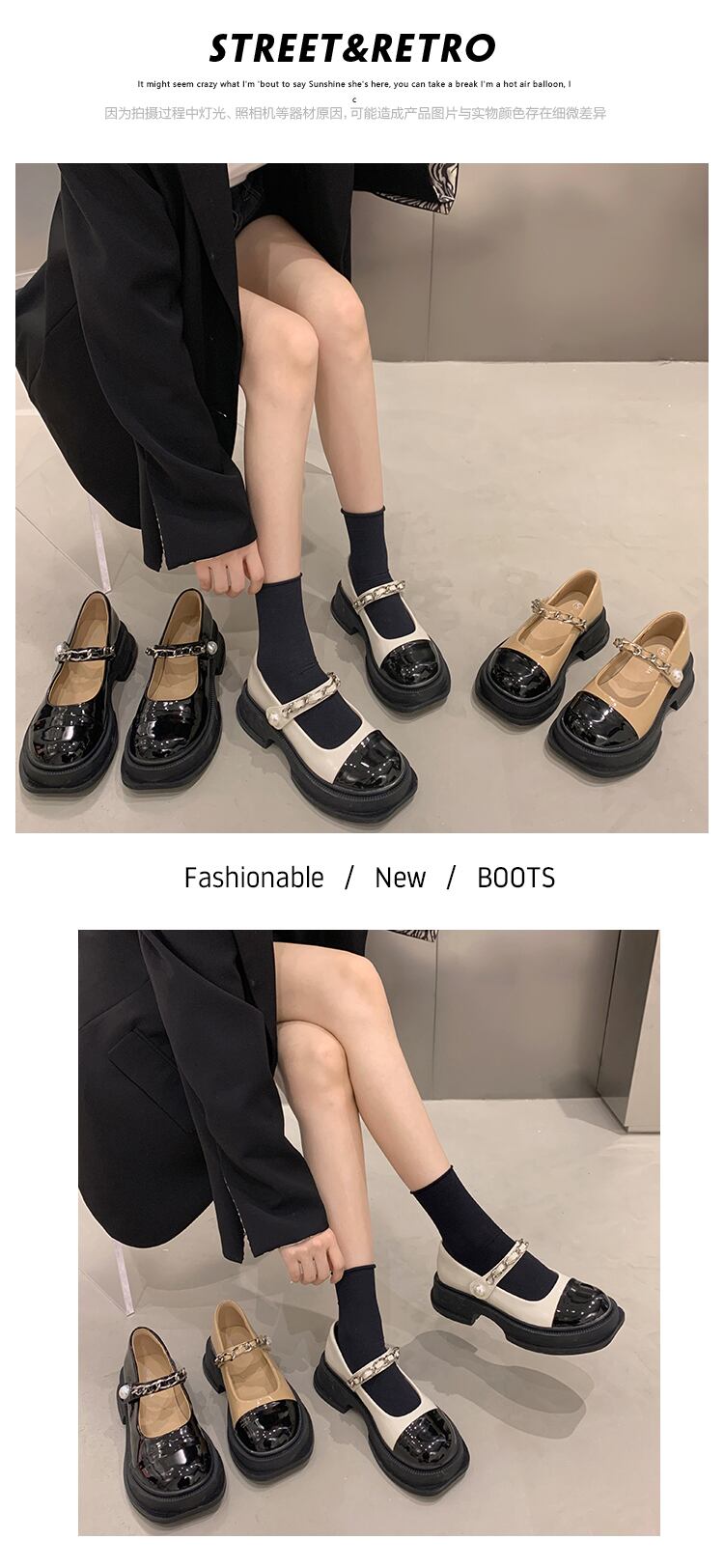 小さな革の靴の女性の夏モデル 2022 新しいネットレッドレトロワイルドパールベルクロ厚底ノンスリップメリージェーンの靴 シューズ サマー 夏物 レザー 真珠 jxjxf68914282125