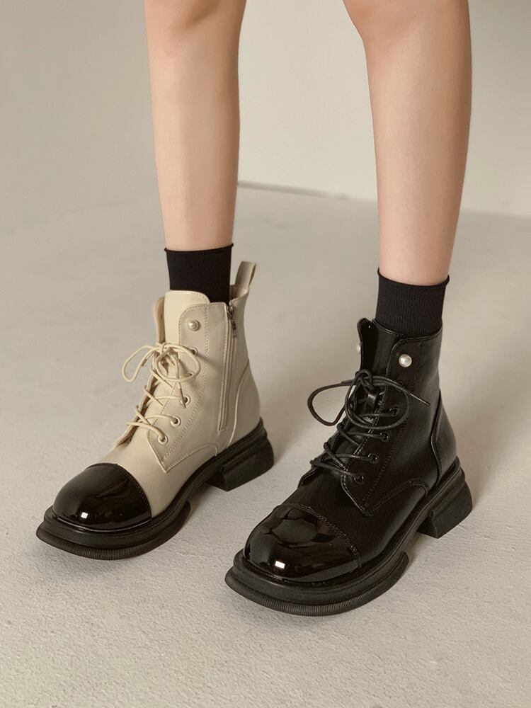 マーティンのブーツの女性の夏モデル 2022 新ファッションフランスのレトロな真珠の厚いヒールのアンクルブーツの女性のイン潮の秋 靴 シューズ サマー 夏物 オータム 秋物 パール jxjxf80472035317