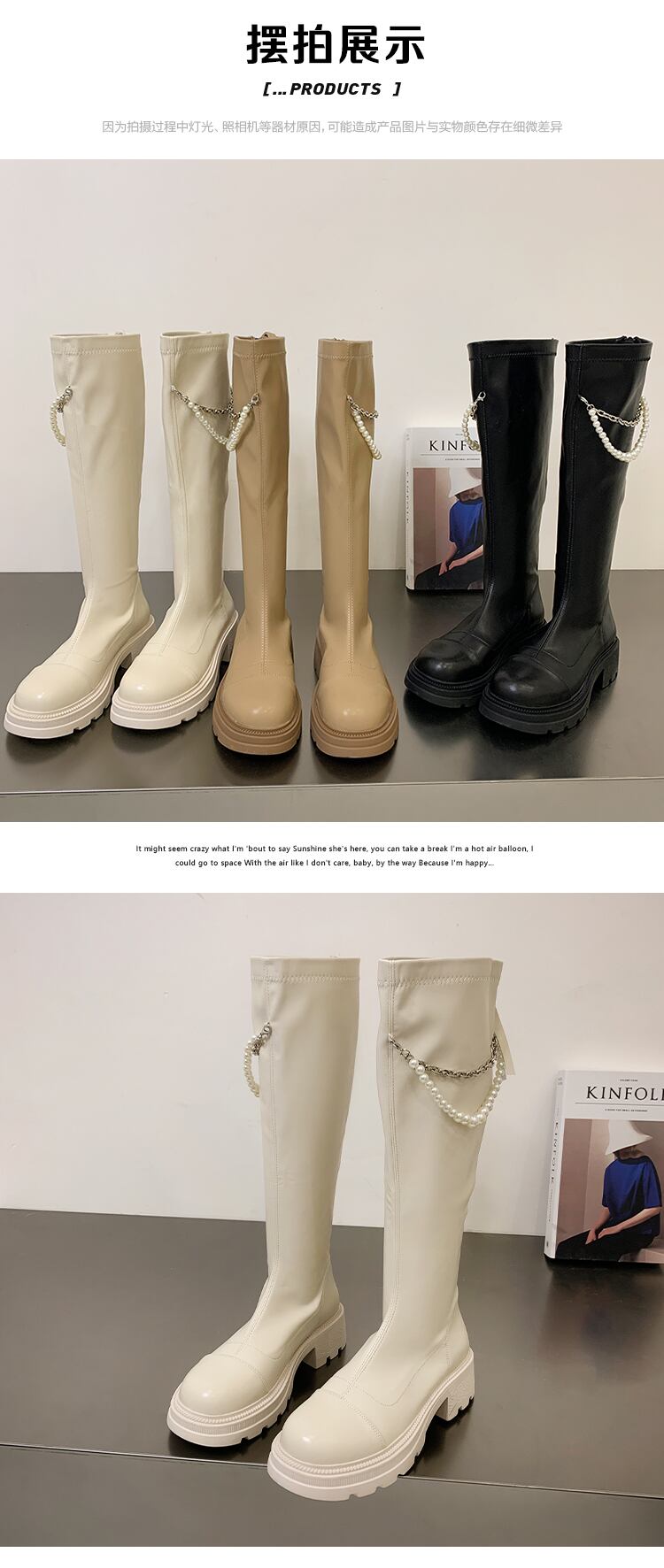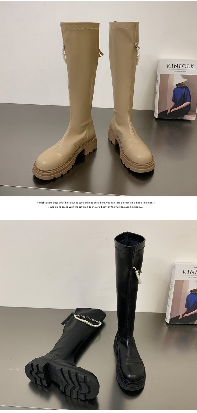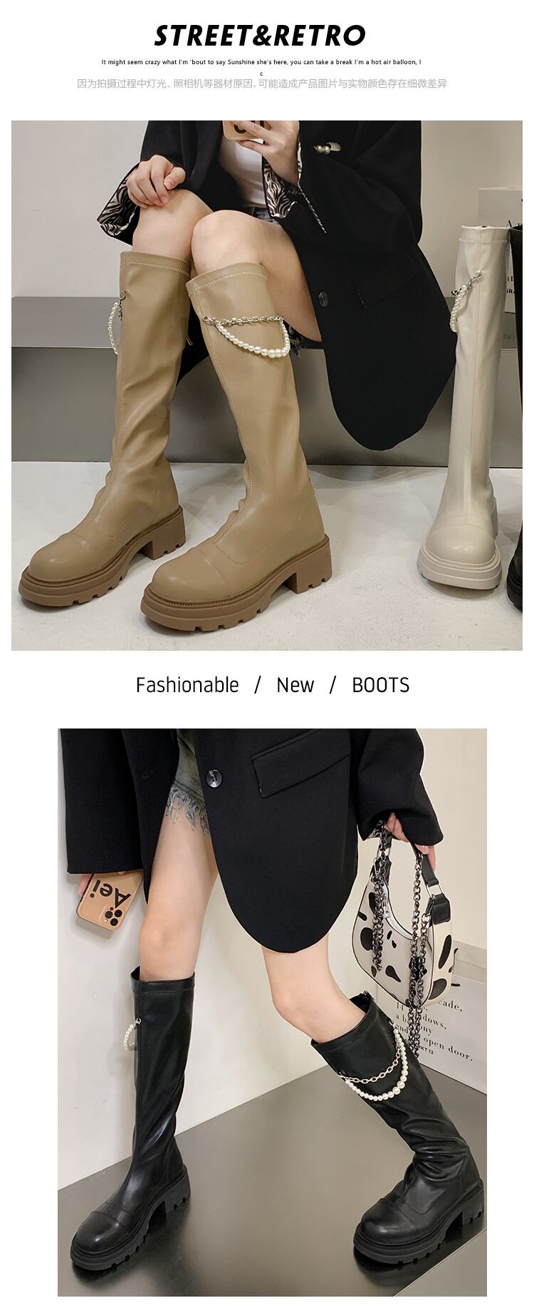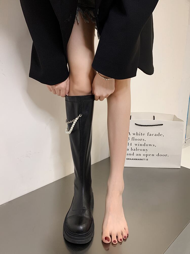 ロングブーツ女性の 2022 夏の新ファッションオールマッチレトロパールチェーン太いヒールノンスリップスキニーブーツ 靴 シューズ サマー 夏物 真珠 jxjxf2240201709