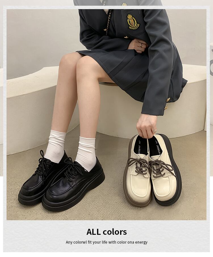 単一の靴の女性の 2022 年のデザイン感覚の新しい Lok Fu レトロな厚い底のニッチ秋の通勤オールマッチ ブリティッシュ スタイルの小さな革靴 シューズ オータム 秋物 レザー jxjxf253965886