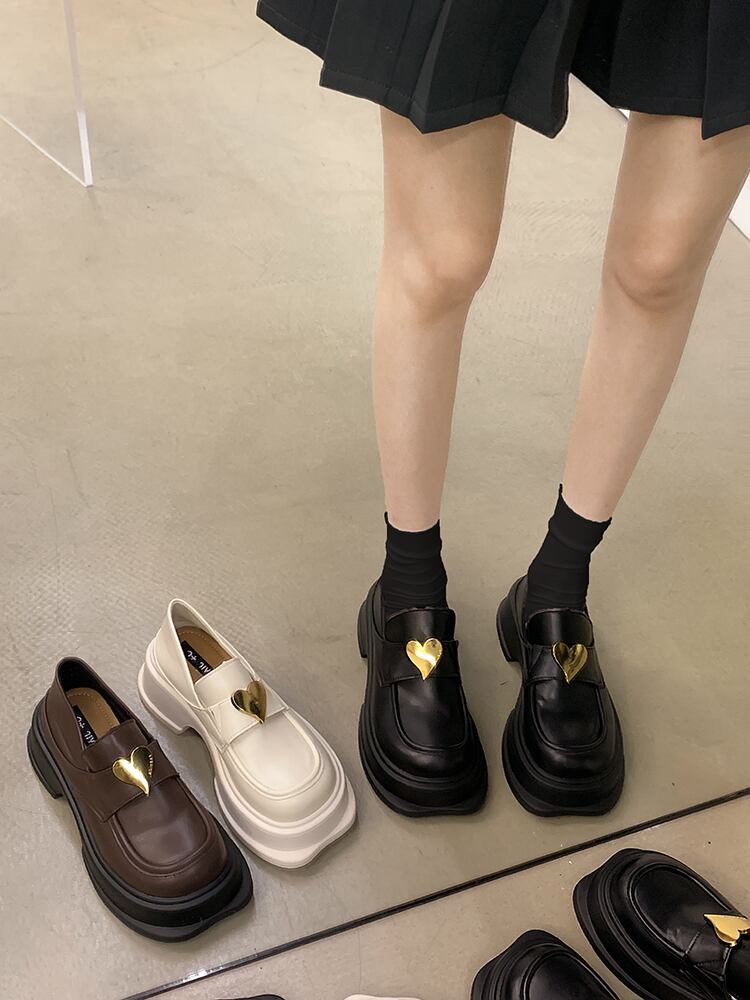 ローファーの女性の靴 2022 秋の新ファッションカジュアルスポンジケーキ厚底増加小さな jk 小さな革の靴の女性 シューズ オータム 秋物 レザー jxjxf16794608881