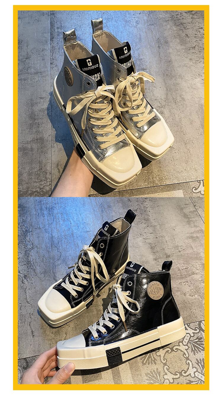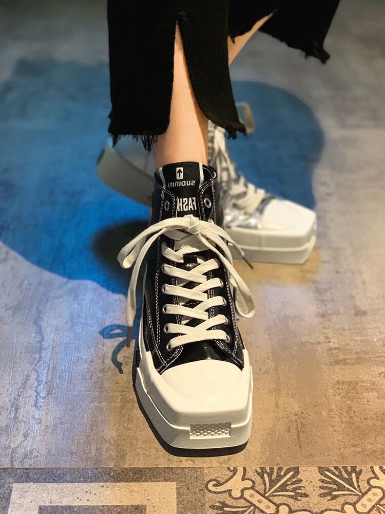 ハイトップシューズ女性の2022夏の新しいストリートスタイルのファッションオールマッチ快適な厚い底のノンスリップスクエアトゥカジュアルシューズイン潮 靴 サマー 夏物 スクウェア jxjxf40588495548