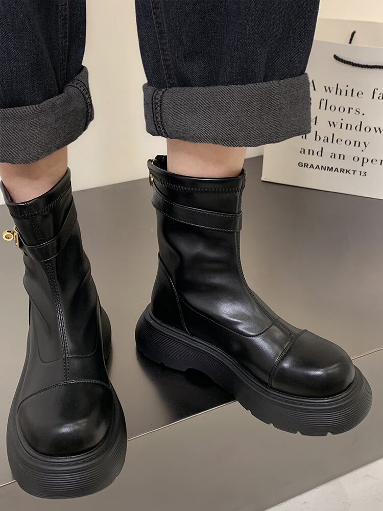 ショート ブーツ女性の春と秋のシングル ブーツ 2022 新しいネット赤ファッション レトロな小さな厚い底ノンスリップ弾性薄いブーツ レッド 靴 シューズ エラスティック 伸縮 スプリング 春物 オータム 秋物 jxjxf20750520614
