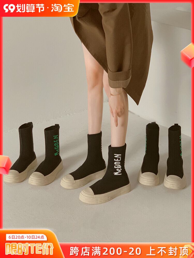 弾性靴下ブーツ女性の秋 2022 新しい小さなマフィン厚底ノンスリップスポーツカジュアルニットショートブーツ潮 シューズ エラスティック 伸縮 オータム 秋物 タイツ ストッキング ソックス jxjxf38058461188