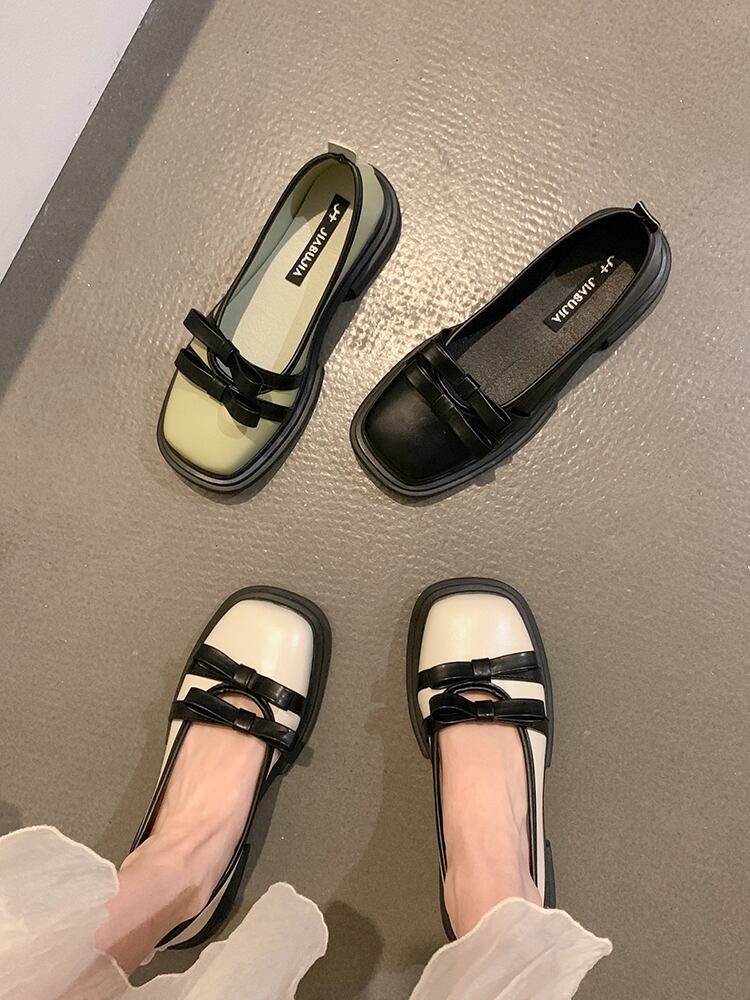 単一の靴の女性の夏のスタイル 2022 新しいフレンチ気質の妖精スタイルのファッションオールマッチ弓メリージェーン小さな革の靴 シューズ リボン サマー 夏物 レザー jxjxf17120074379