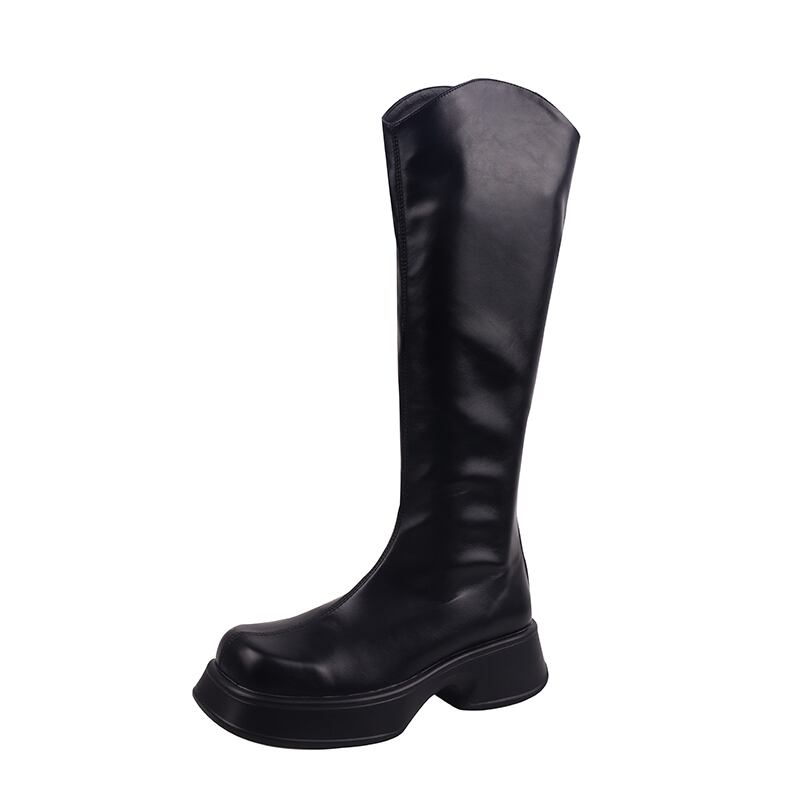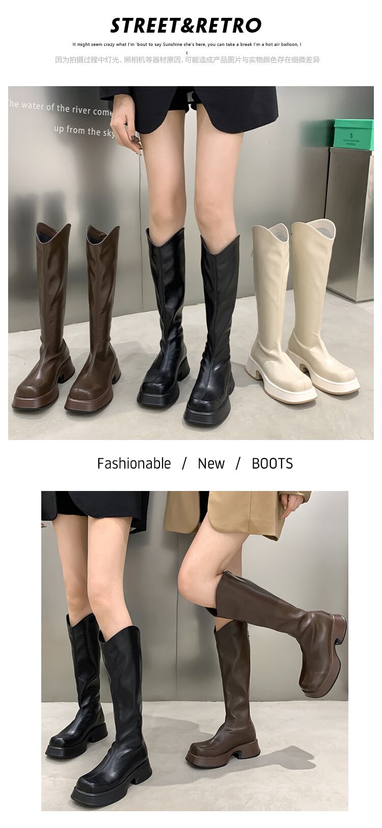 騎士のブーツロングブーツ女性の 2022 新ファッションレトロ野生の小さな四角い頭の厚い底弾性薄いブーツ 靴 シューズ エラスティック 伸縮 スクウェア jxjxf99934654671