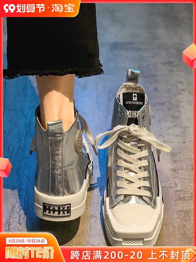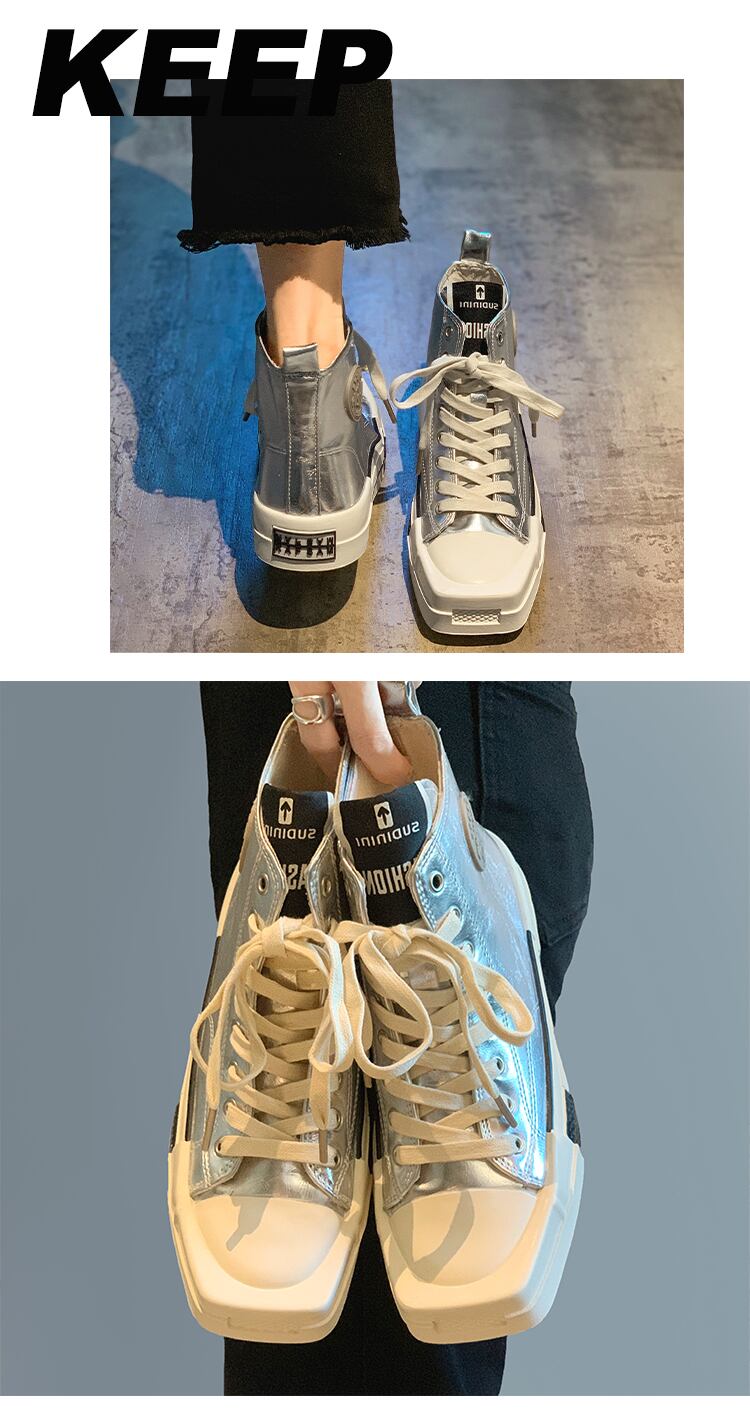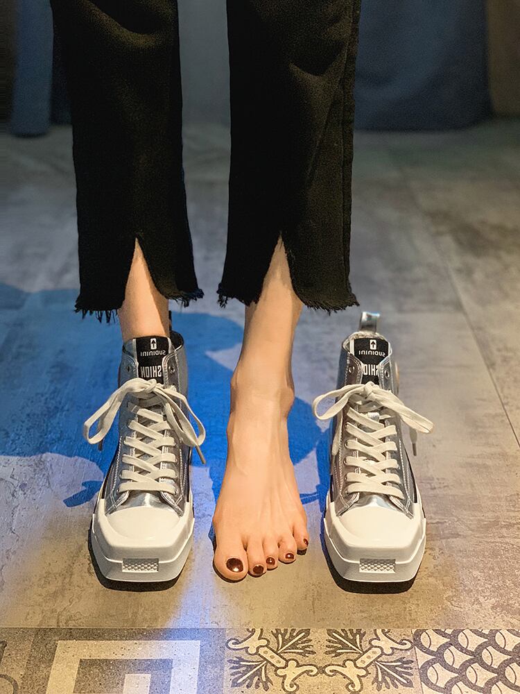 ハイトップシューズレディース2022夏の新ファッションオールマッチパーソナリティトレンドシルバースクエアトゥ厚底ノンスリップカジュアルシューズ 靴 サマー 夏物 銀 スクウェア jxjxf97446621755
