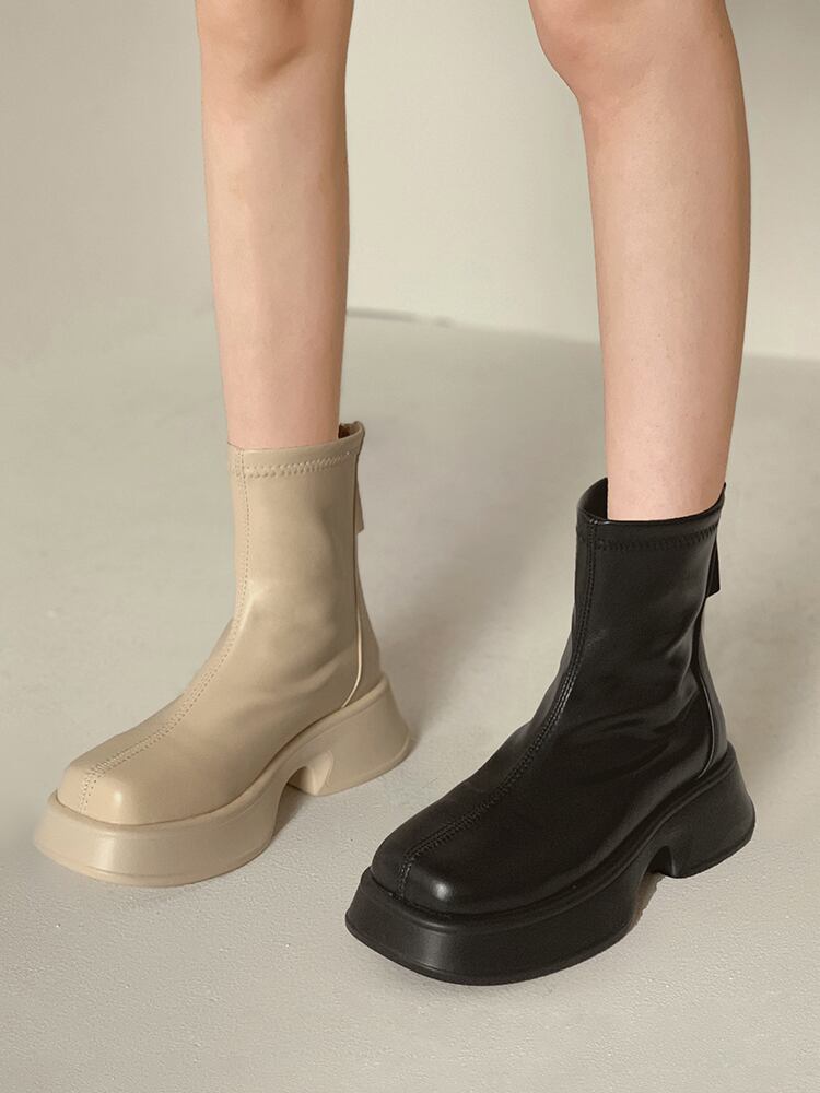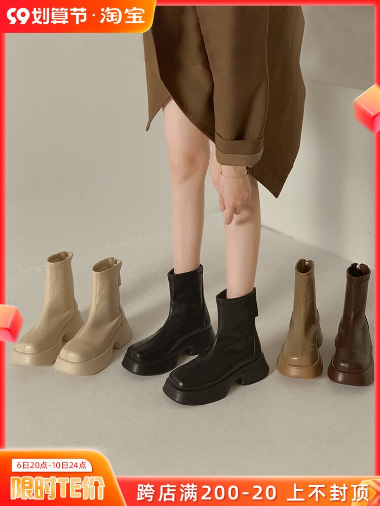 スクエアトゥ ショートブーツ レディース 2022年夏新作 フレンチファッション カジュアル オールマッチ 厚底 滑り止め 伸縮性 薄手ブーツ 靴 シューズ エラスティック サマー 夏物 スクウェア jxjxf18236319028