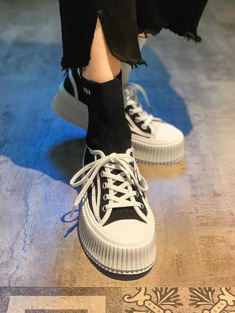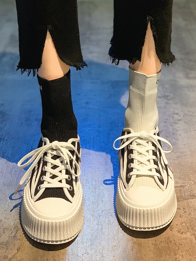 キャンバスシューズ女性の 2022 秋の新スポンジケーキ厚底ニッチカジュアルワイルドイン潮ハイトップソックス靴 オータム 秋物 タイツ ストッキング jxjxf90986757593