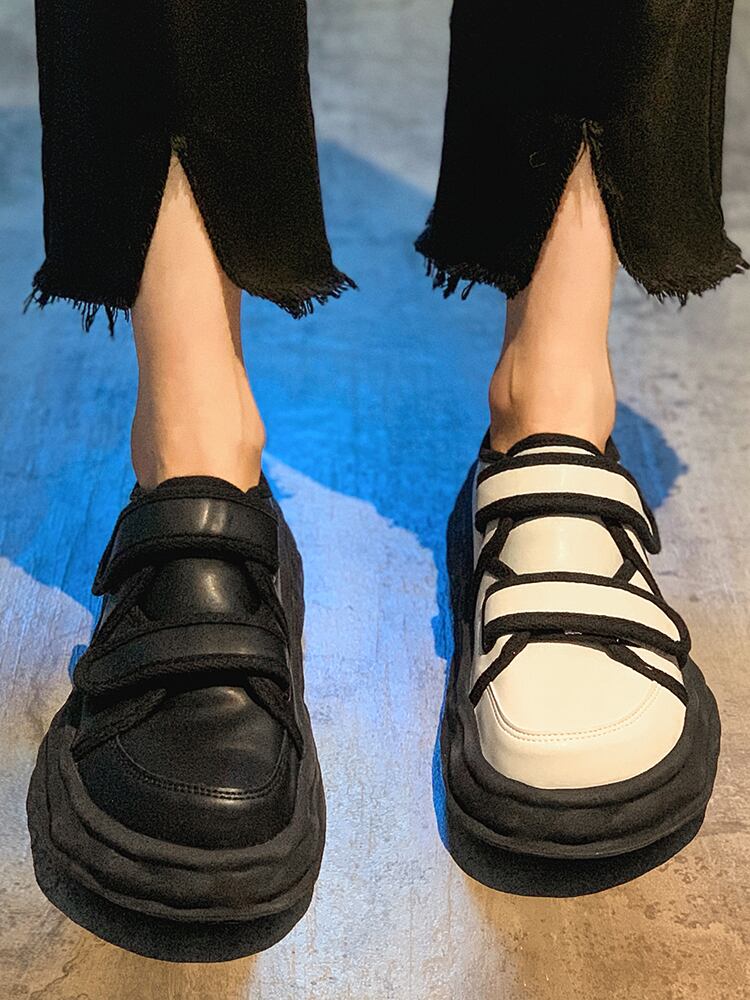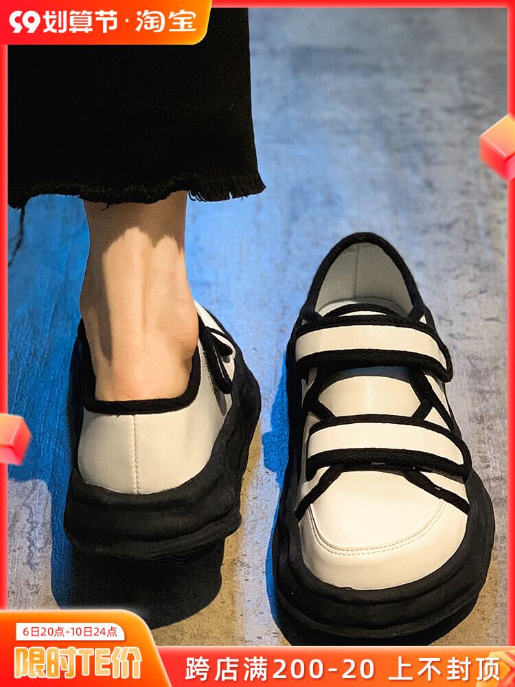 カジュアルシューズ女性の 2022 夏の新しいシンプルなファッションレトロカジュアルオールマッチベルクロ厚底ノンスリップ小さな革靴 サマー 夏物 レザー jxjxf47806272311