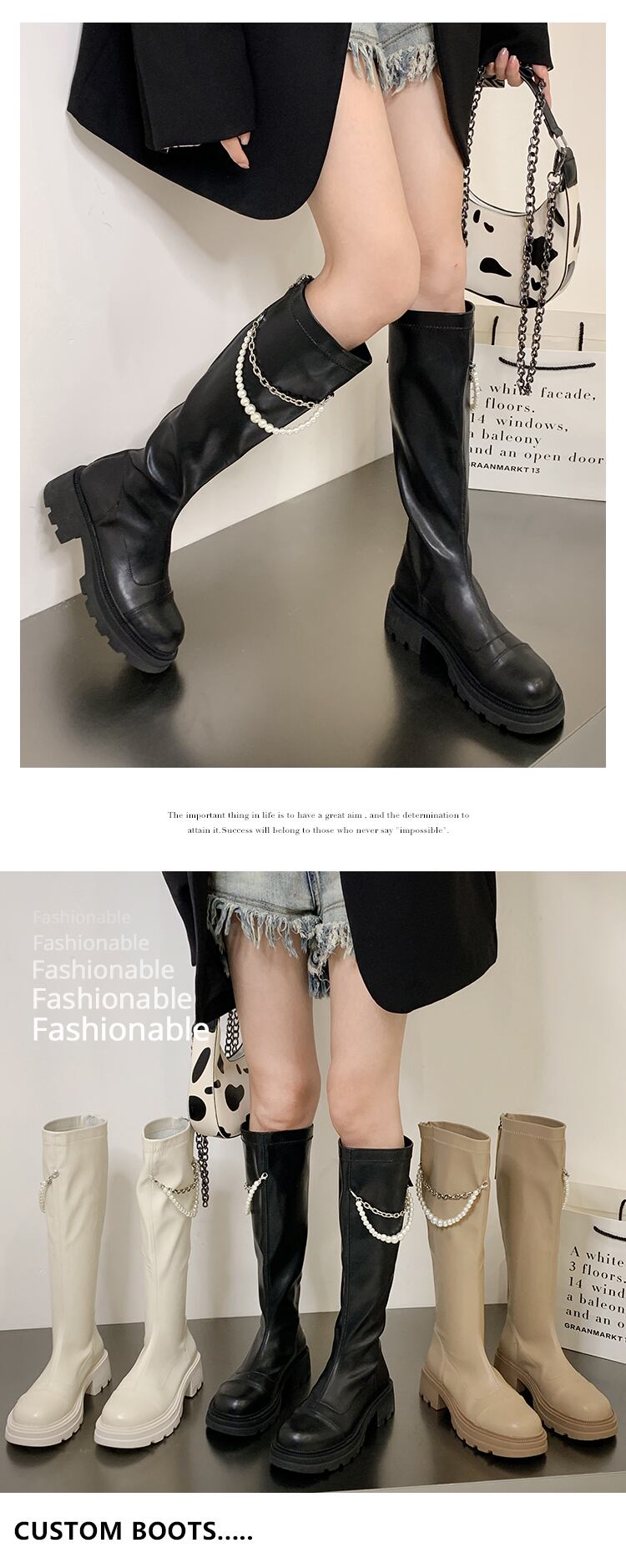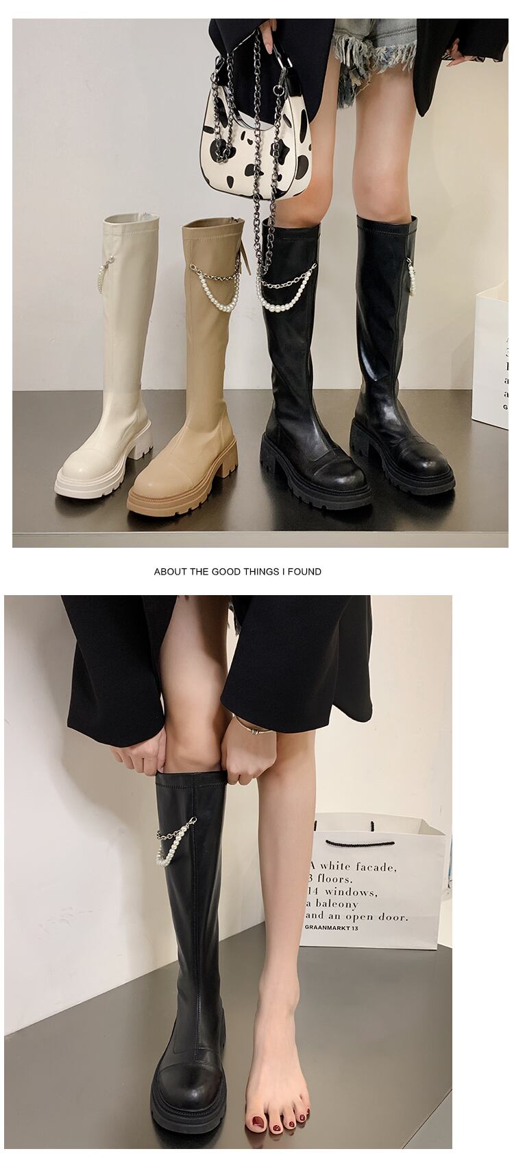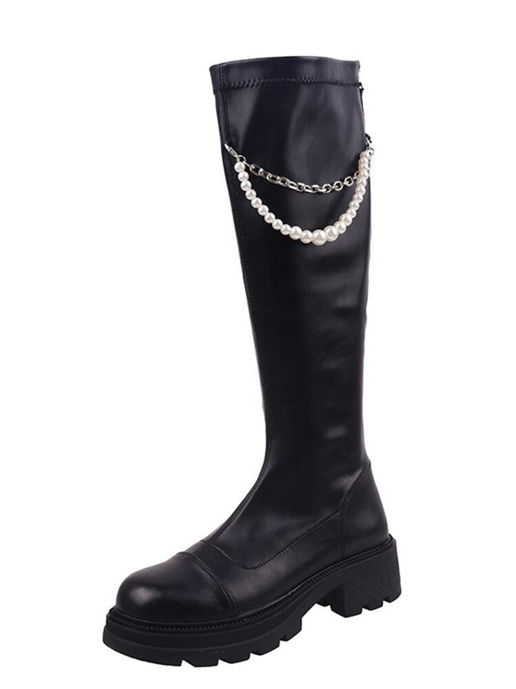 ロングブーツの女性の2022年の夏の新しいファッションオールマッチレトロウエスタンスタイルのパールチェーン太いヒールノンスリップスキニーブーツ 靴 シューズ サマー 夏物 真珠 jxjxf7598084513