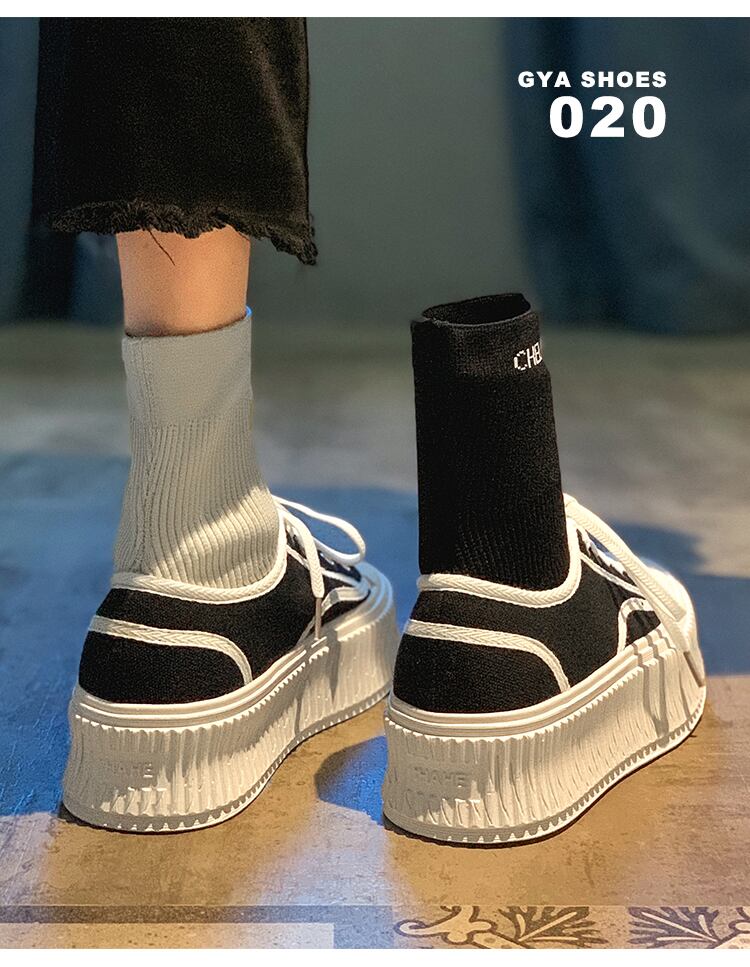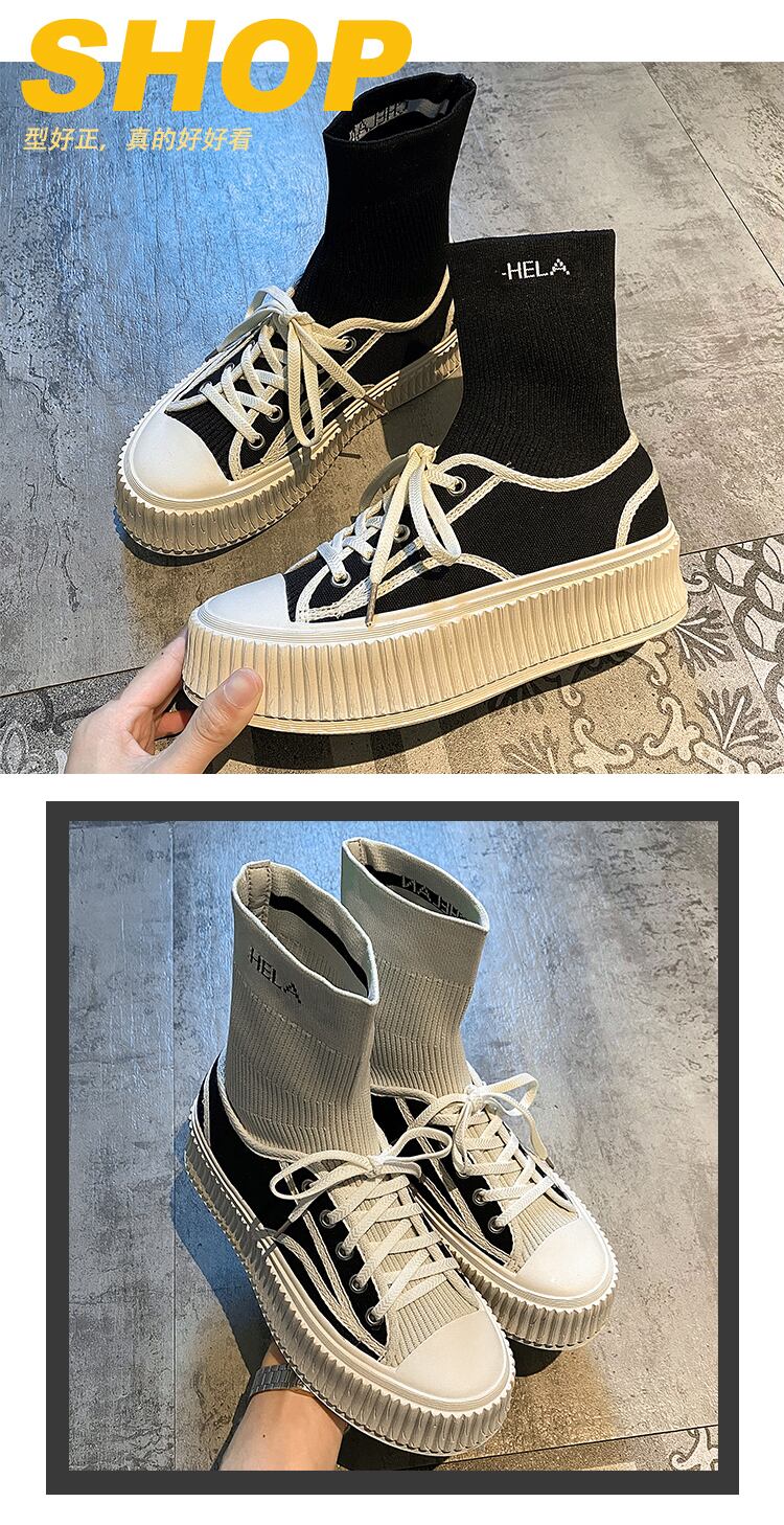 ストレッチソックスシューズレディース2022秋の新ニッチファッションカジュアルオールマッチハイトップ厚底キャンバスシューズイン潮 靴 エラスティック 伸縮 オータム 秋物 タイツ ストッキング jxjxf22077829643