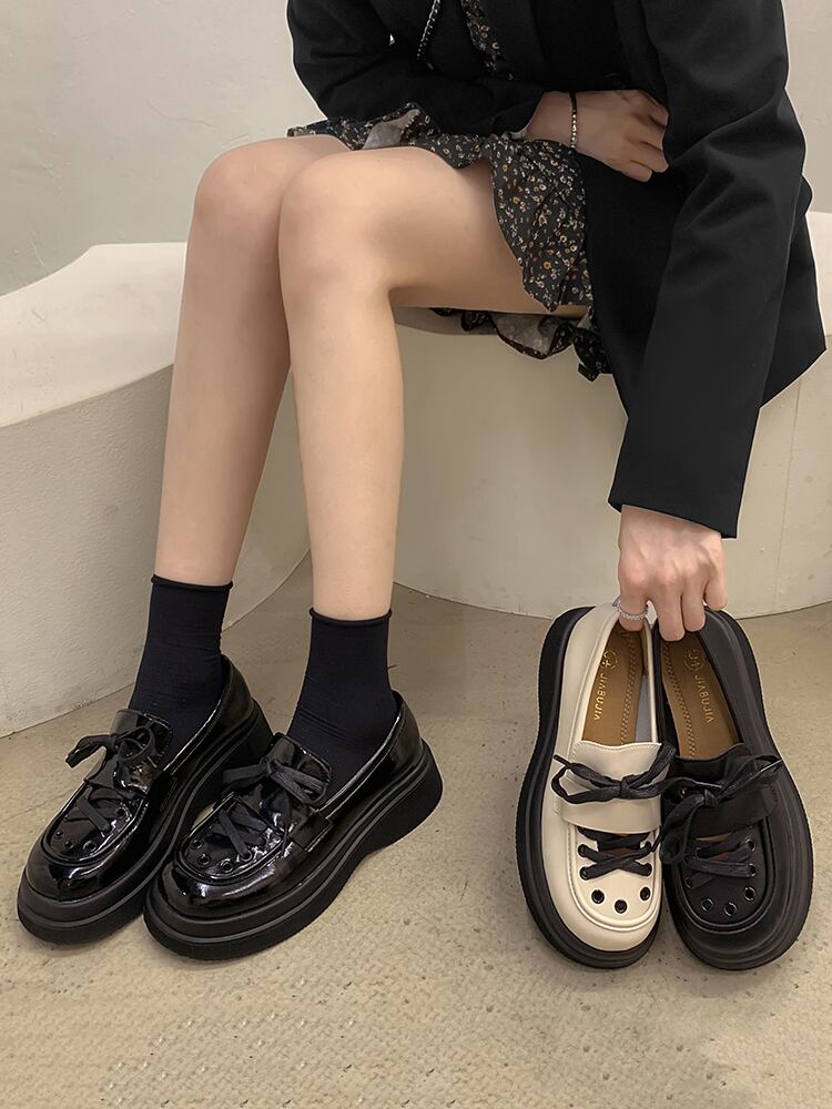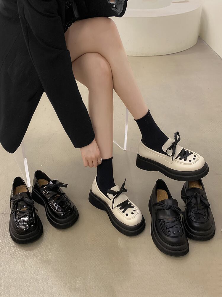 英国風の小さな革の靴の女性の 2022 夏の新しいニッチな気質のカジュアルなオールマッチ ファッション レトロな黒の靴 シューズ ブラック サマー 夏物 レザー jxjxf95073028784