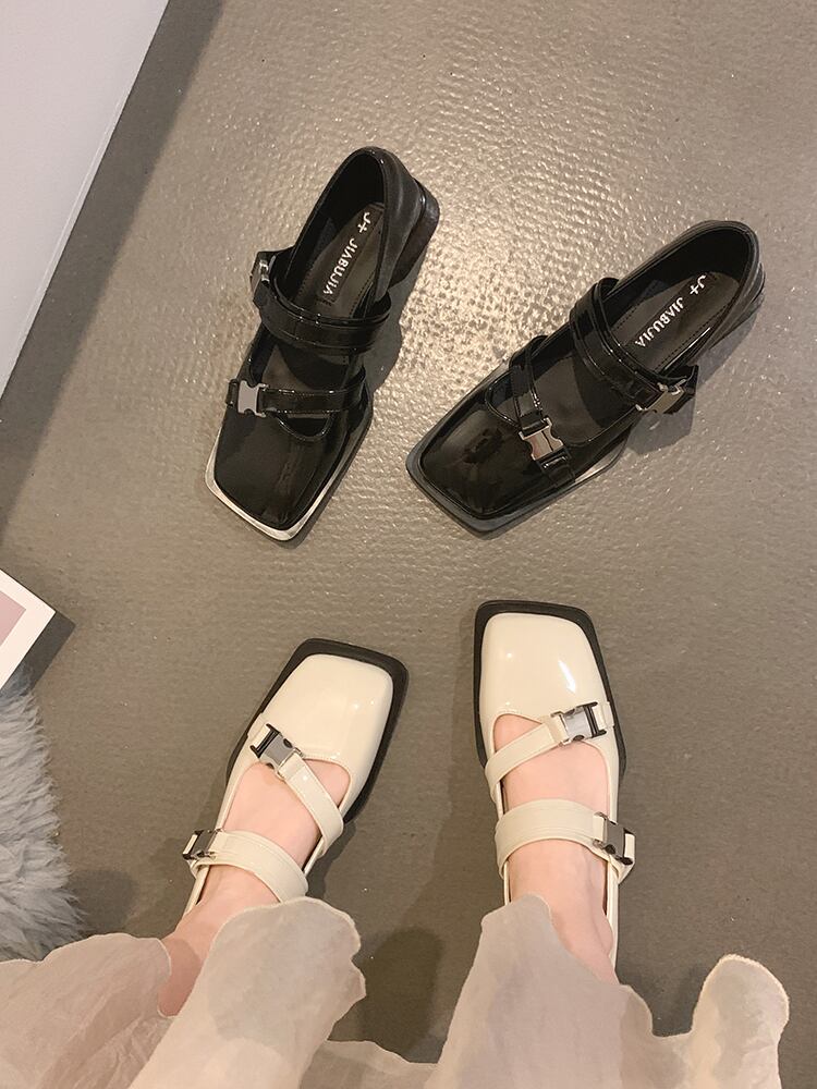 サマースタンダードヒールレザー 靴 シューズ レトロ 大人ガーリー スウィート キュート カジュアル 夏物 スクウェア jxjxf26383668772
