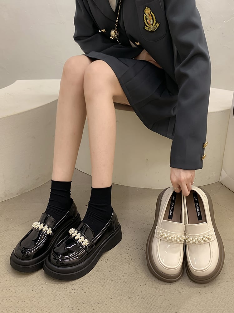 サマーパールラインストーンレザー 靴 シューズ ローファー 夏物 真珠 jxjxf95984563298
